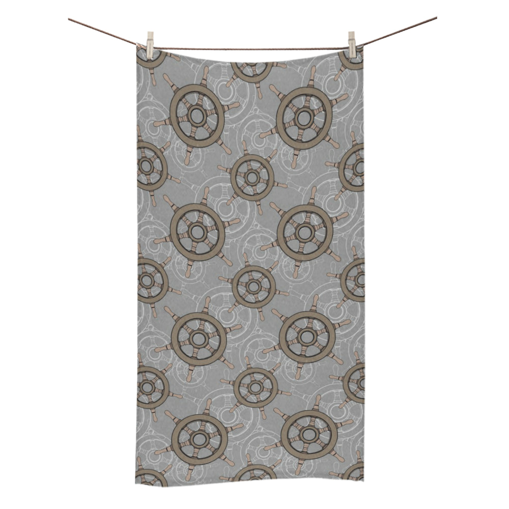 nautical wood steering wheel pattern Bath Towel 30"x56" is a uniqued design and limited item. It made to order, hand printed, and sewn with love in our factory.
