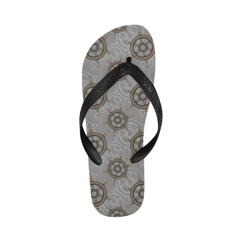 nautical wood steering wheel pattern Unisex Flip Flops is a uniqued design and limited item. It made to order, hand printed, and sewn with love in our factory.