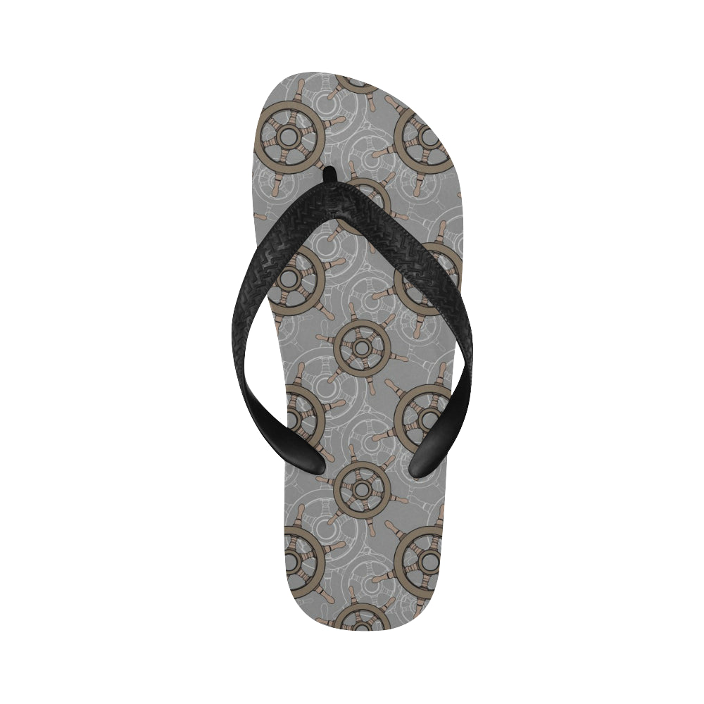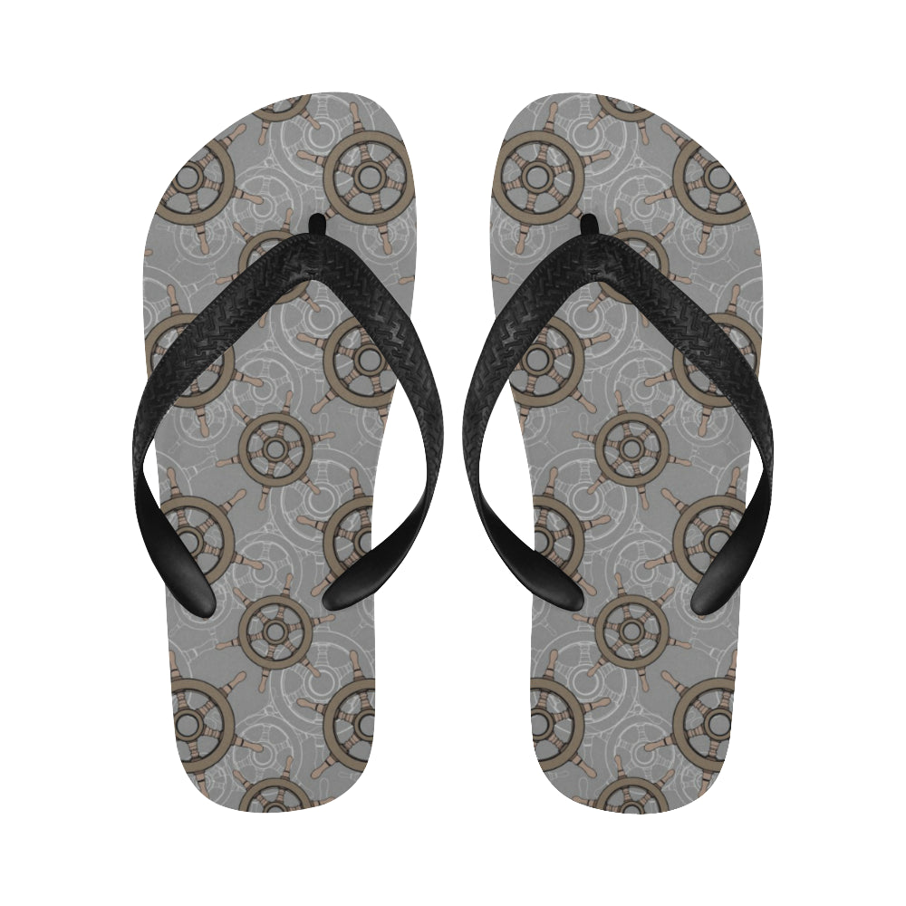 nautical wood steering wheel pattern Unisex Flip Flops