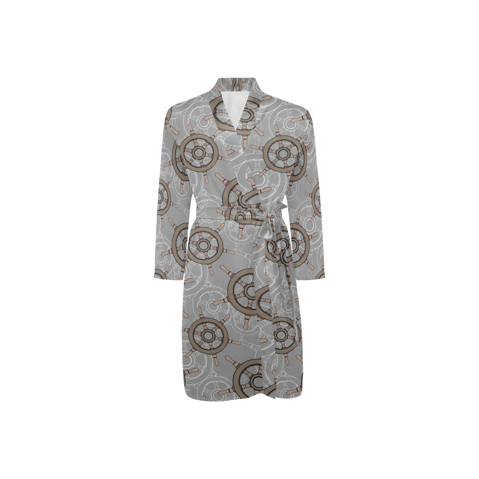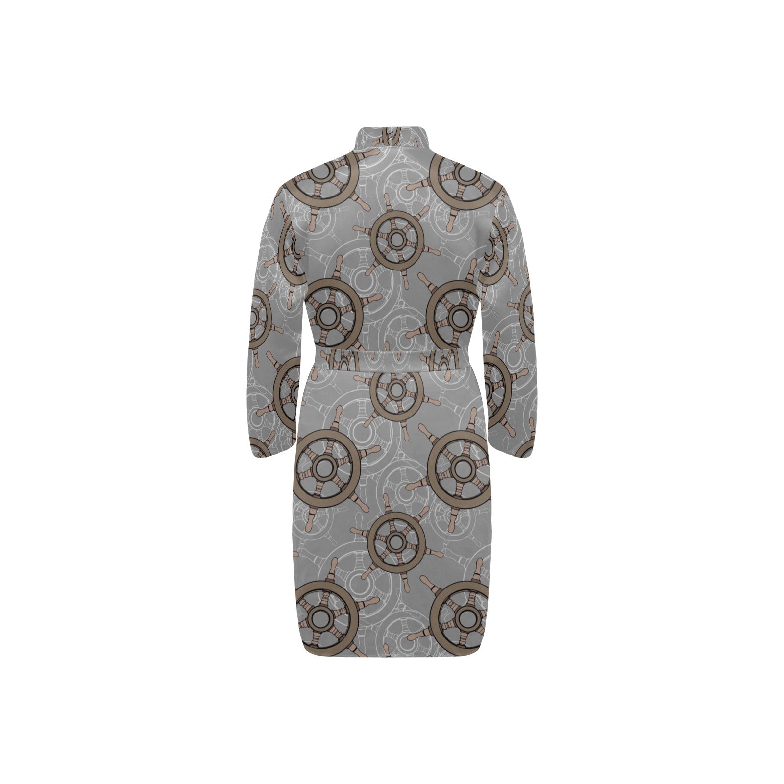 nautical wood steering wheel pattern Men's Long Sleeve Belted Night Robe
