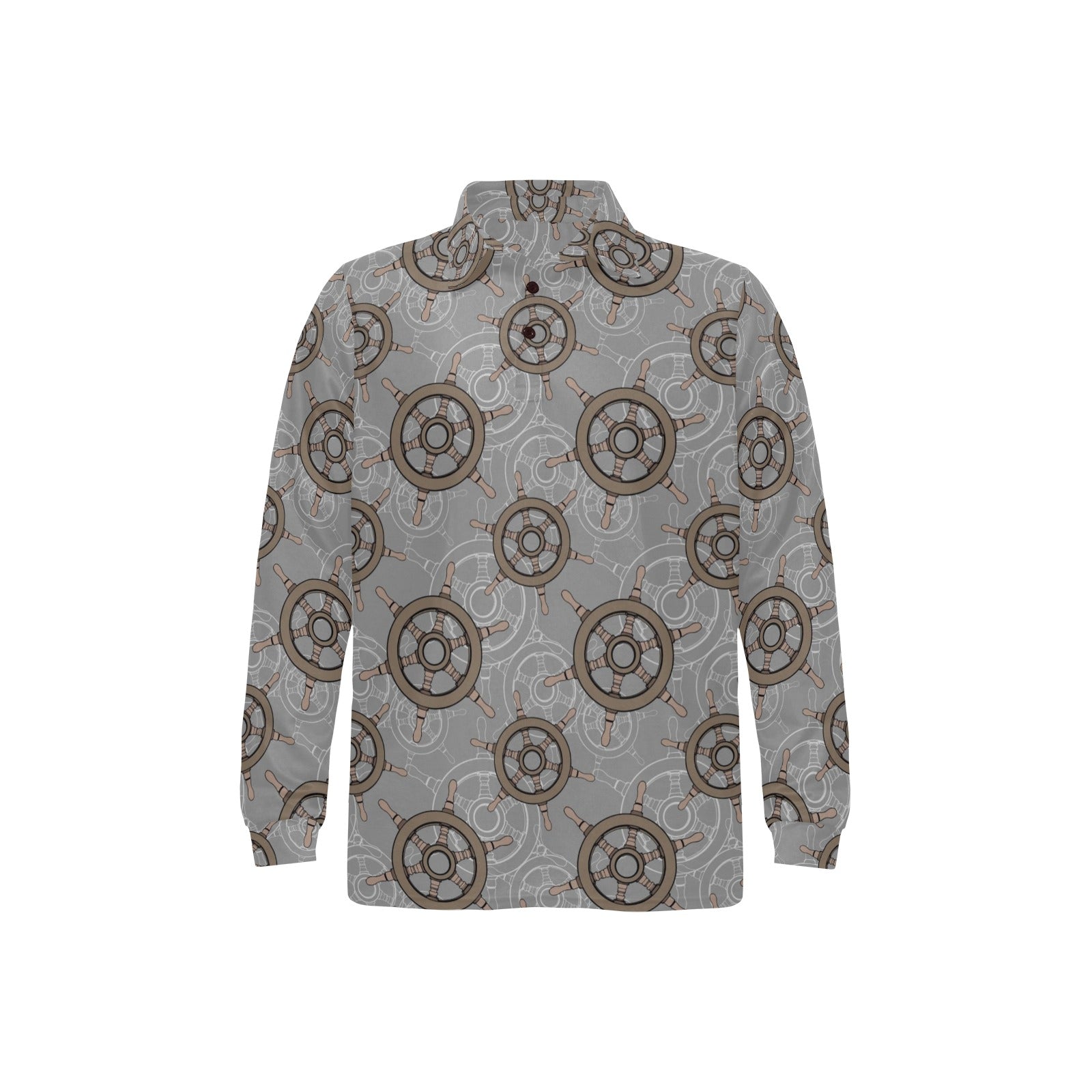 nautical wood steering wheel pattern Men's Long Sleeve Polo Shirt