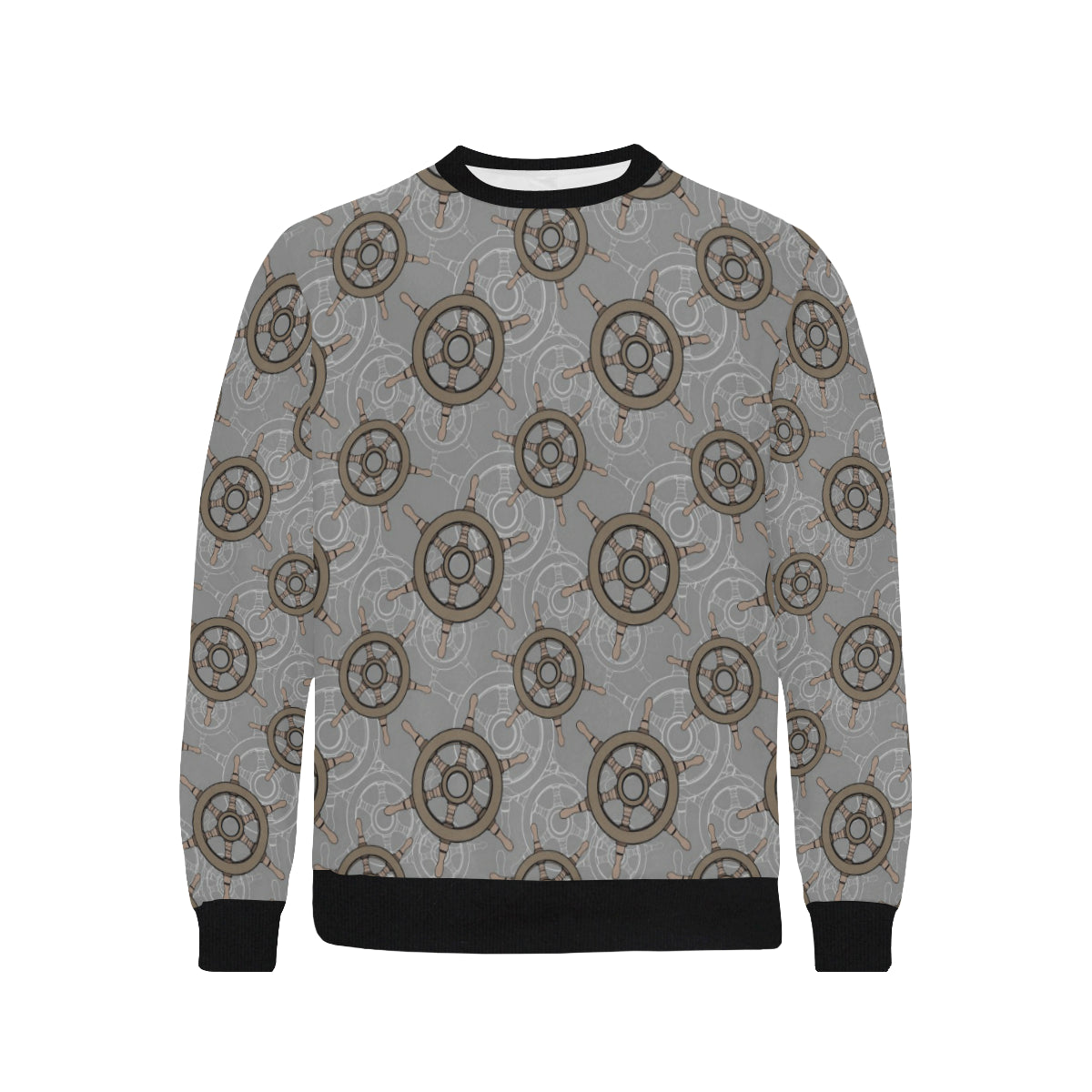 nautical wood steering wheel pattern Men's Crew Neck Sweatshirt