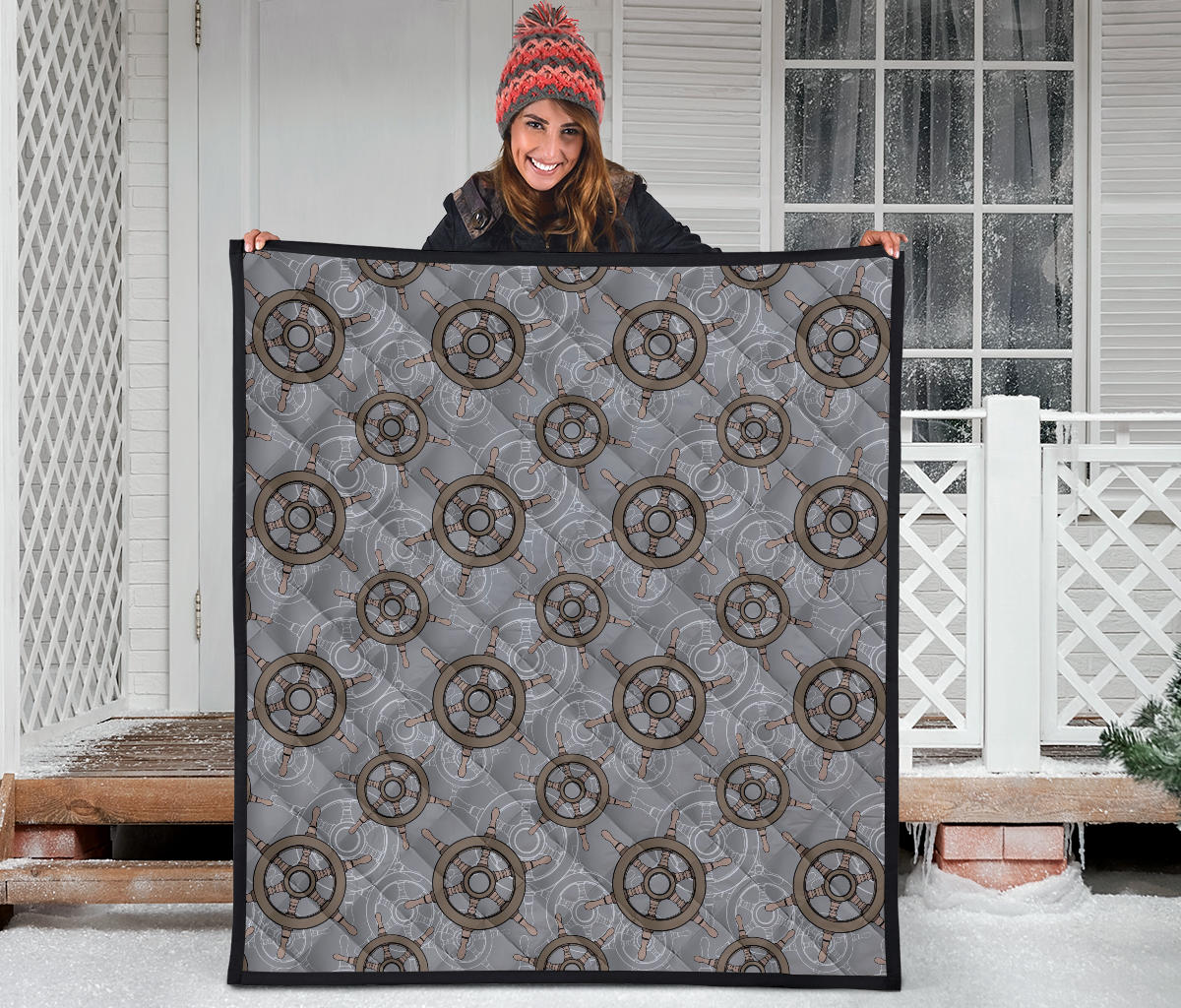 Nautical Wood Steering Wheel Pattern Premium Quilt is a uniqued design and limited item. It made to order, hand printed, and sewn with love in our factory.