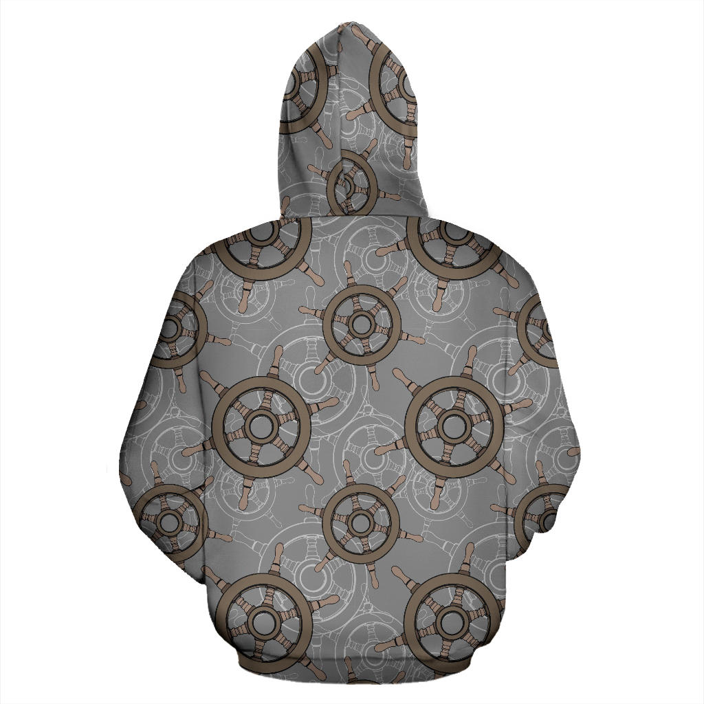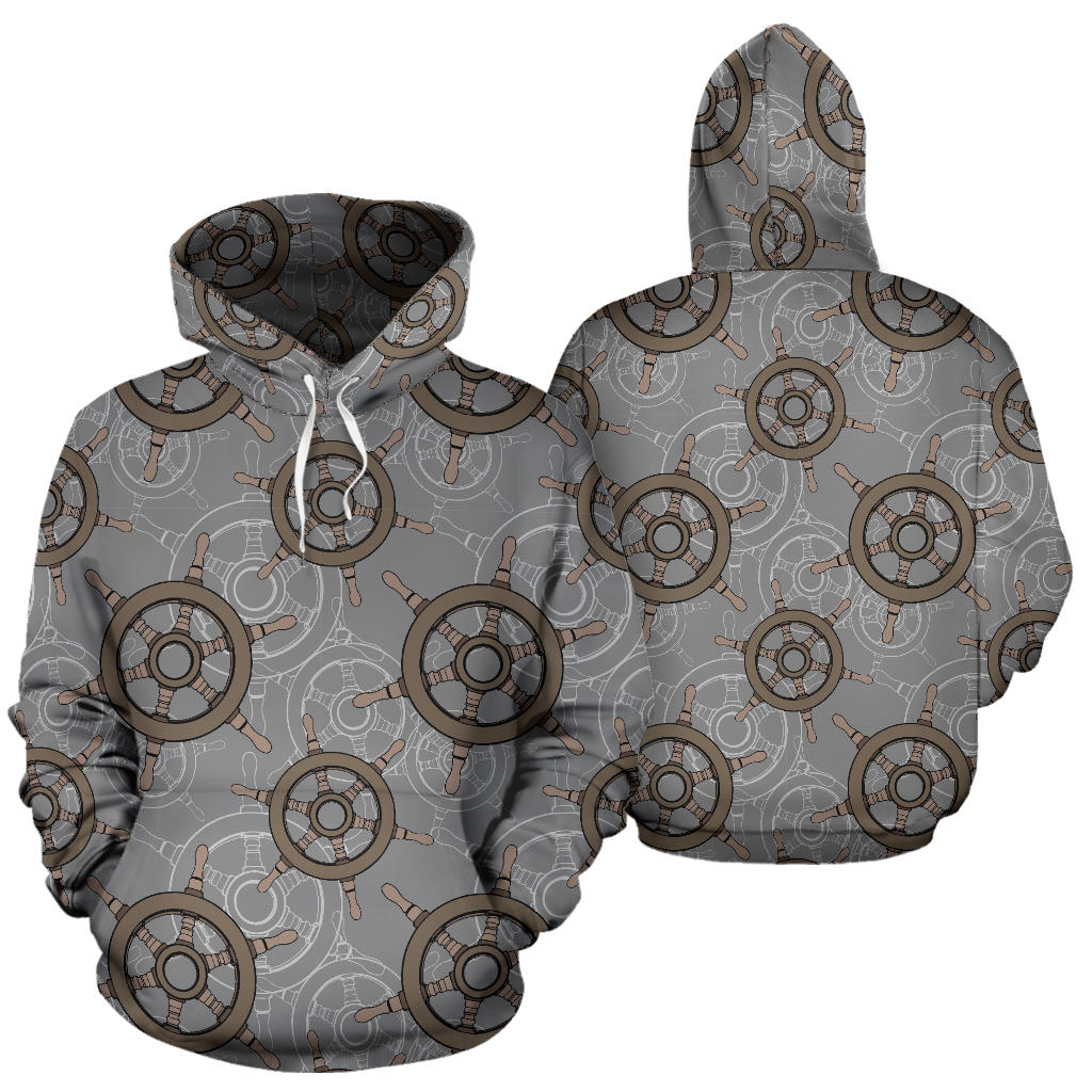 Nautical Wood Steering Wheel Pattern Men Women Pullover Hoodie