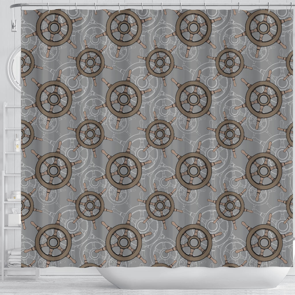 Nautical Wood Steering Wheel Pattern Shower Curtain Fulfilled In US