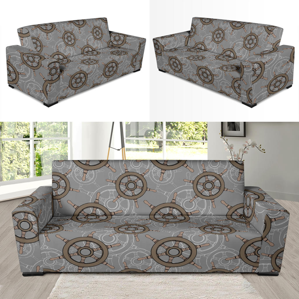 Nautical Wood Steering Wheel Pattern Sofa Slipcover