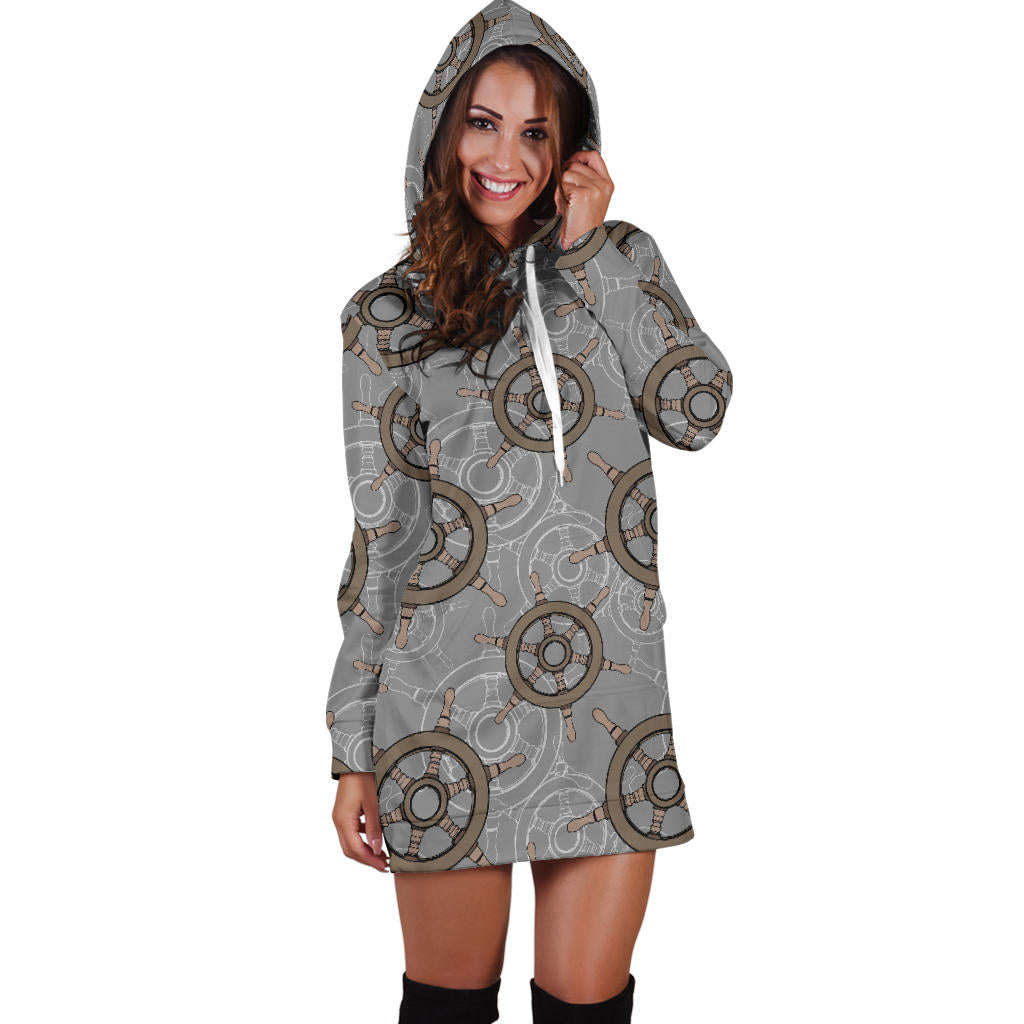 Nautical Wood Steering Wheel Pattern Women'S Hoodie Dress