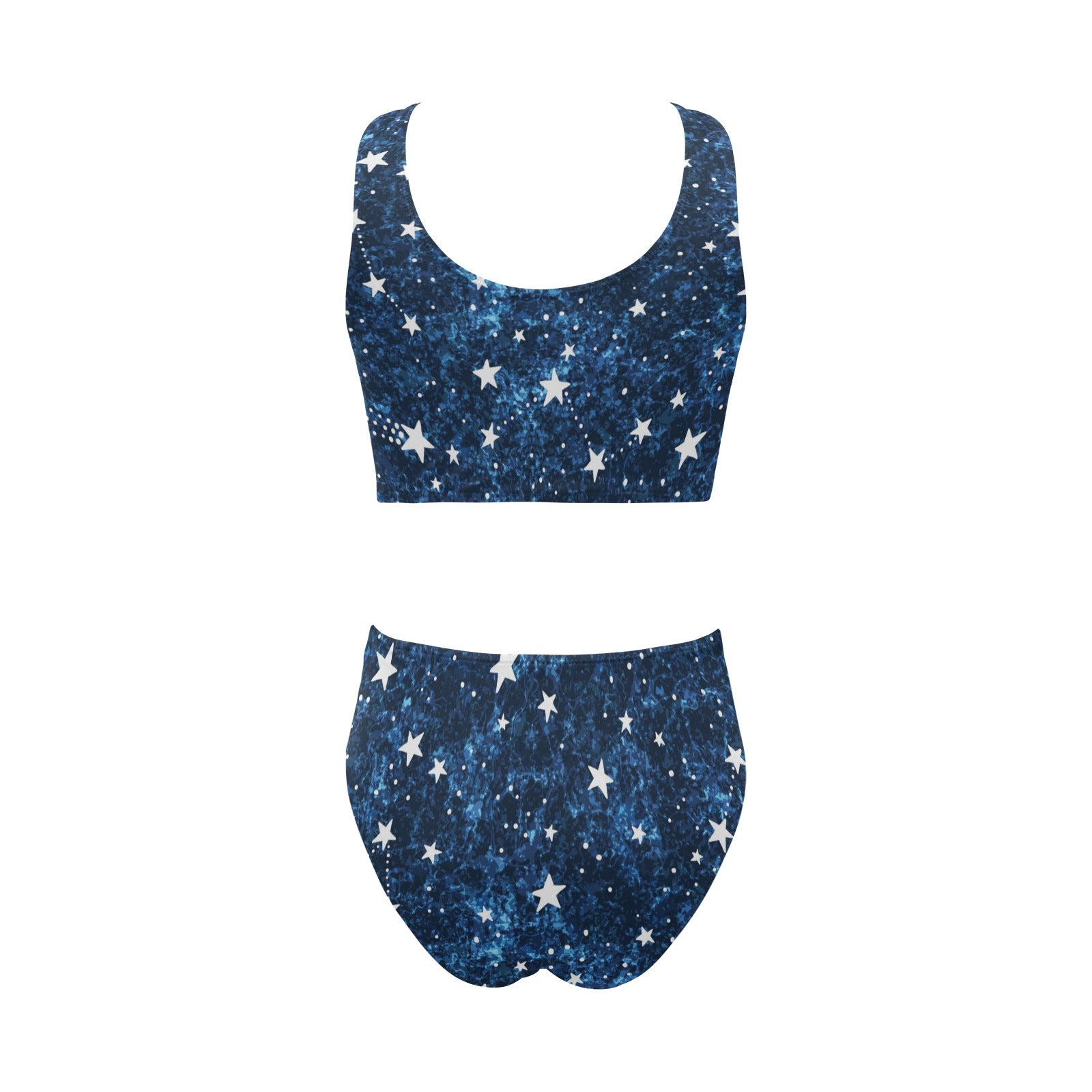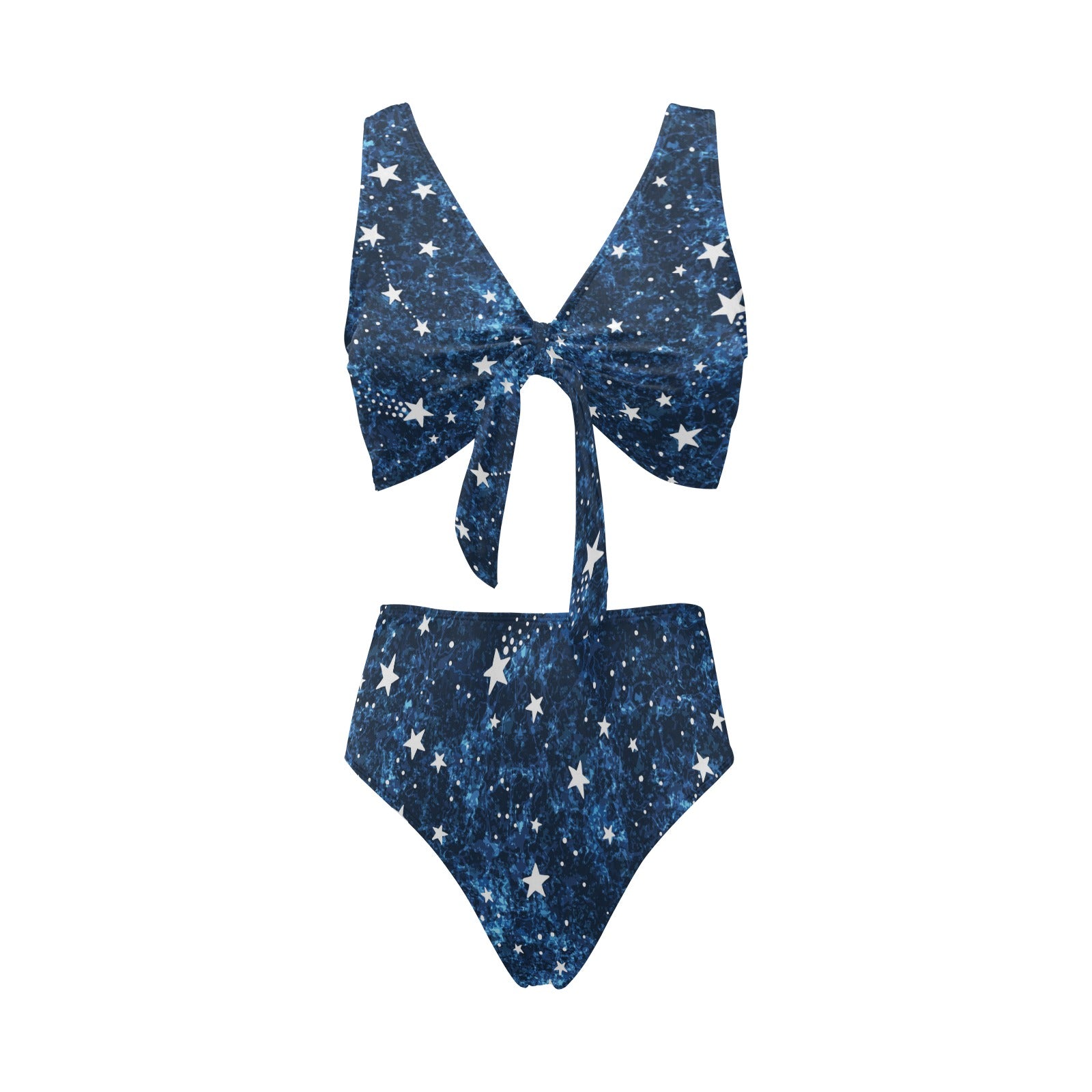 Night sky star pattern Chest Bowknot High Waisted Bikini Swimsuit
