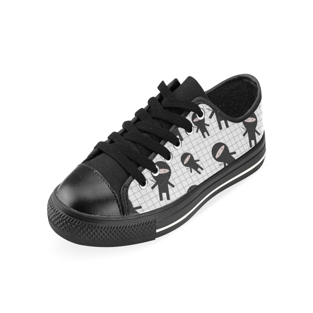 Ninja pattern plaid background Men's Low Top Canvas Shoes Black