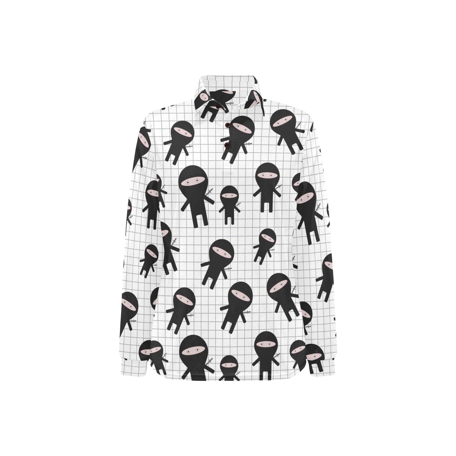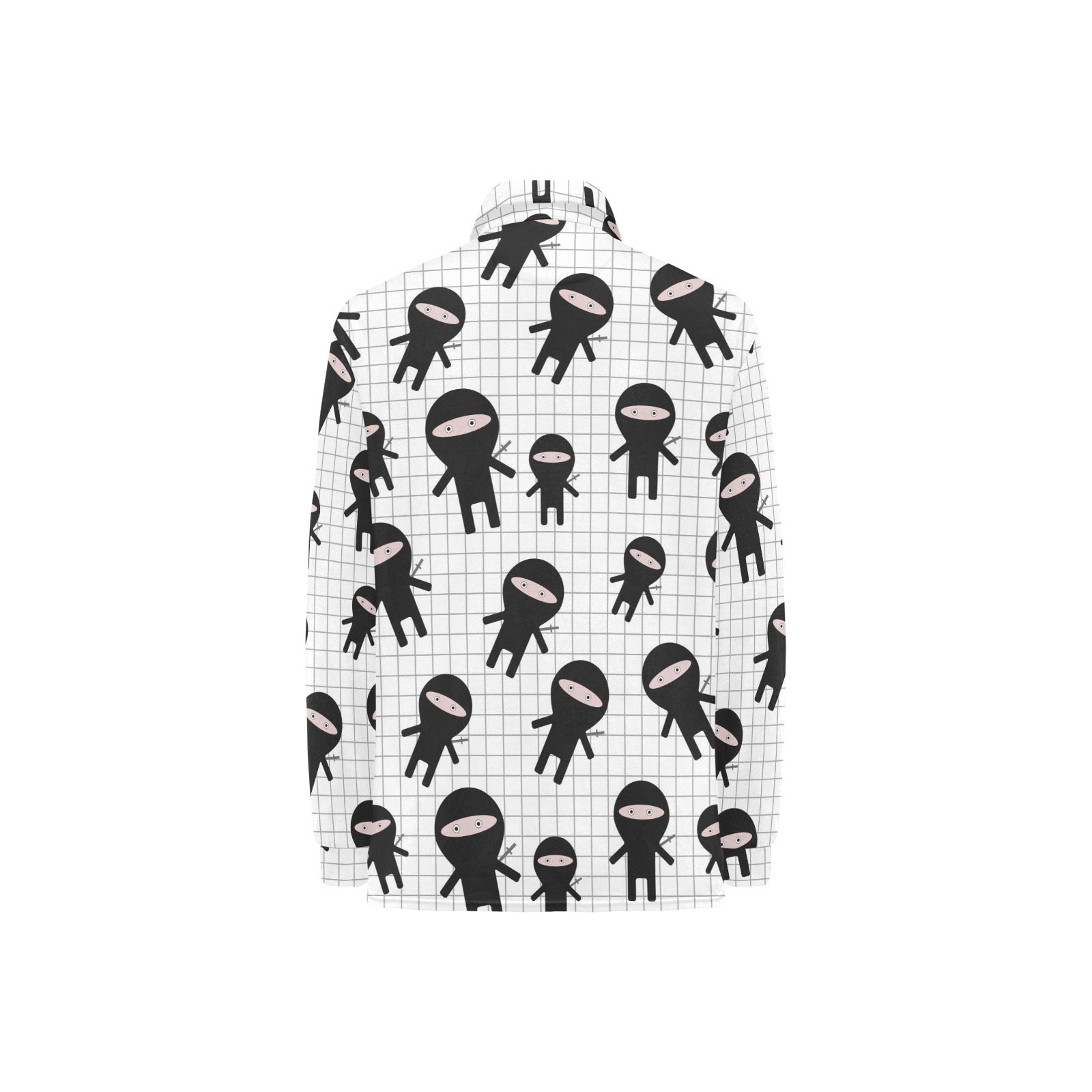 Ninja pattern plaid background Women's Long Sleeve Polo Shirt