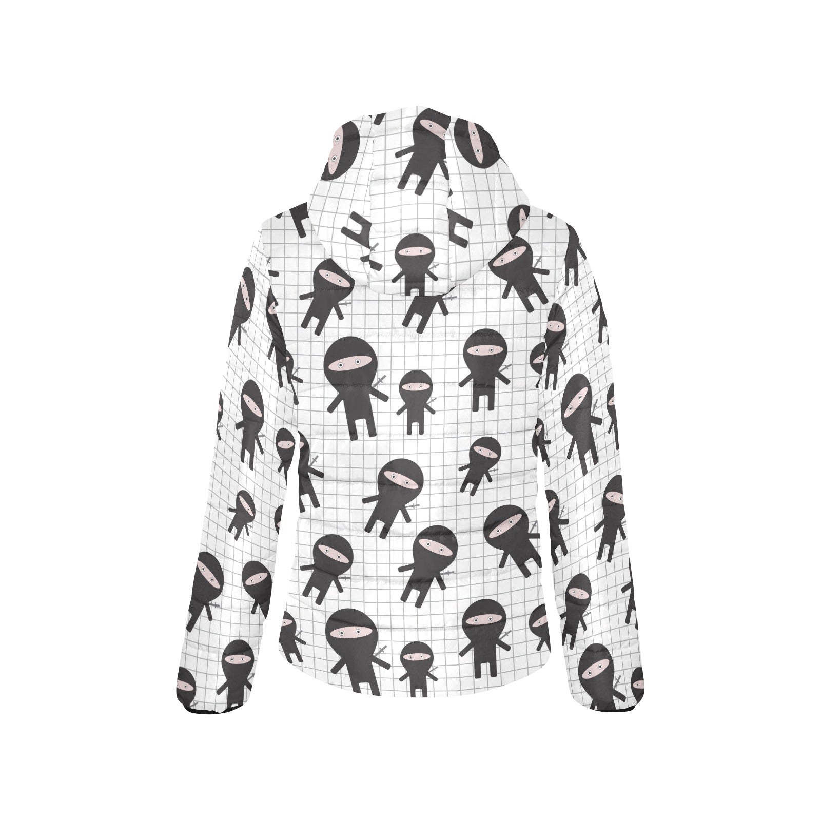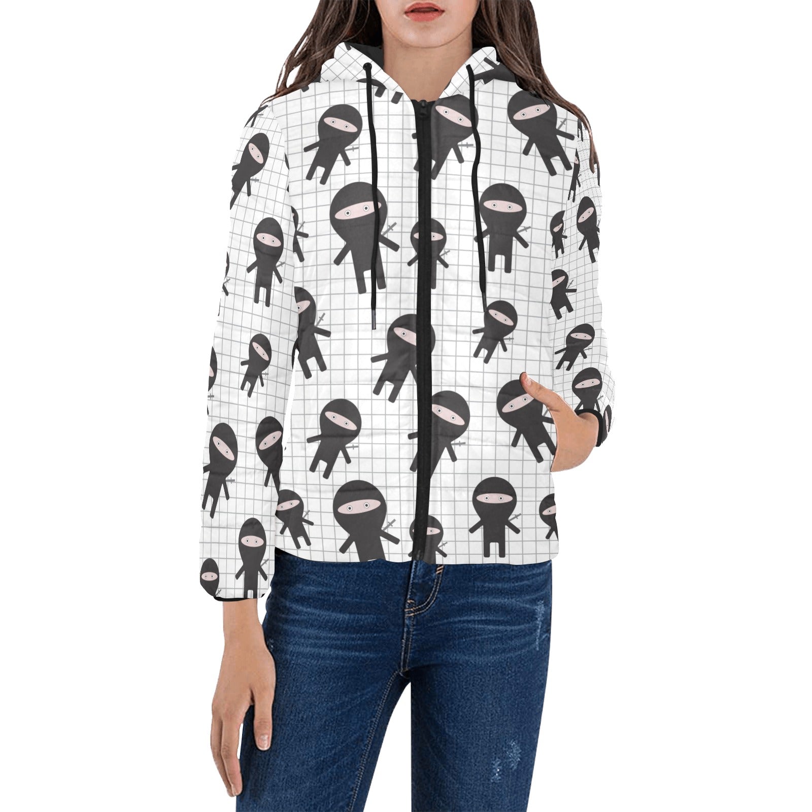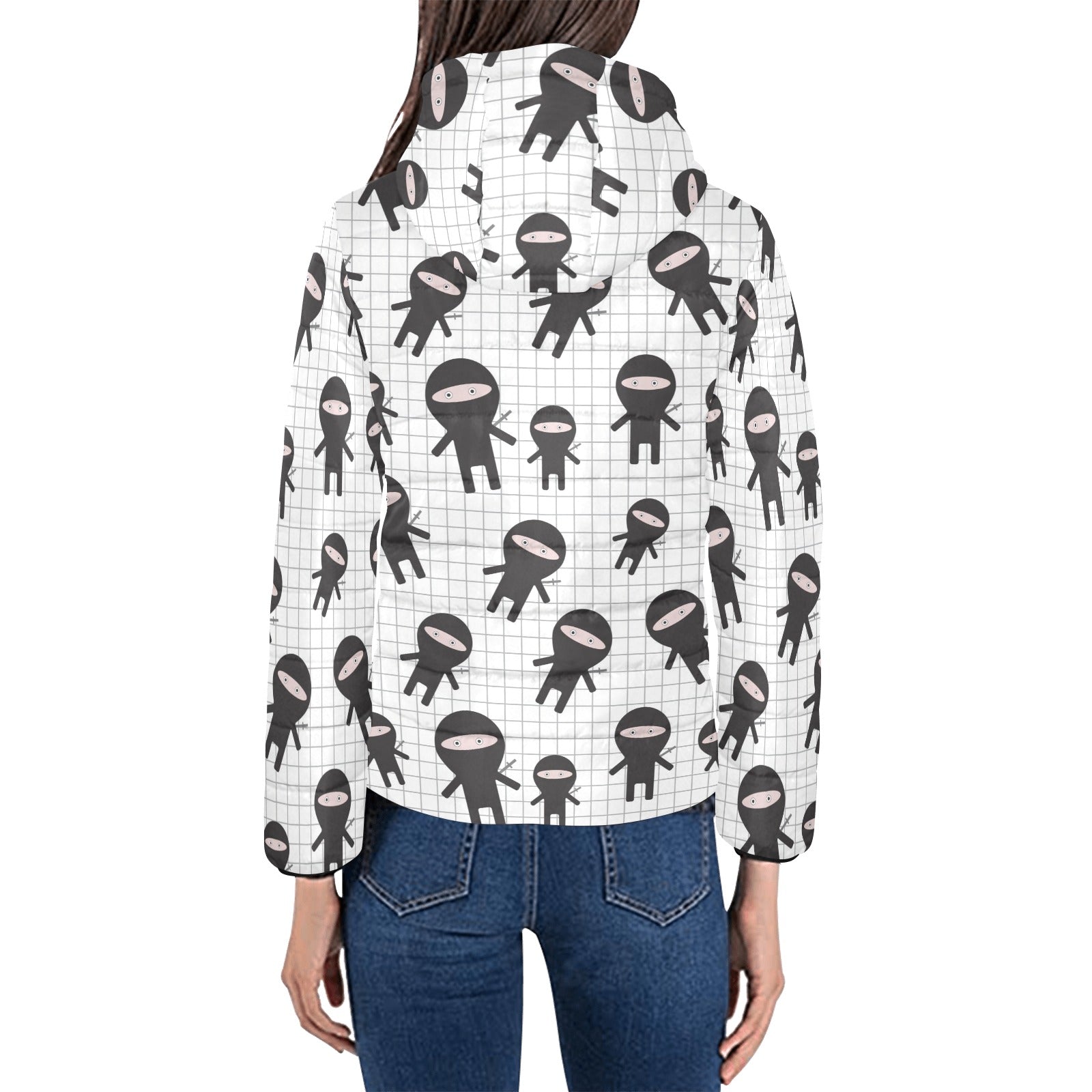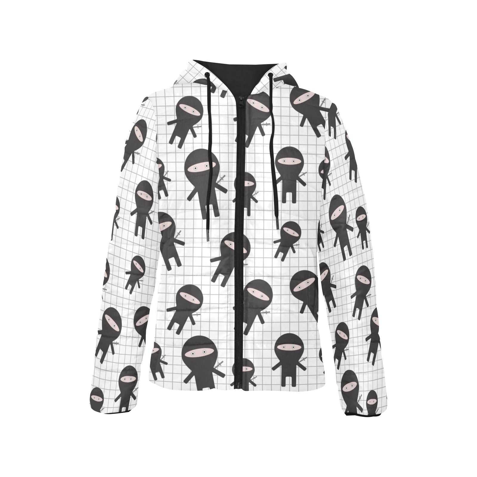 Ninja pattern plaid background Women's Padded Hooded Jacket
