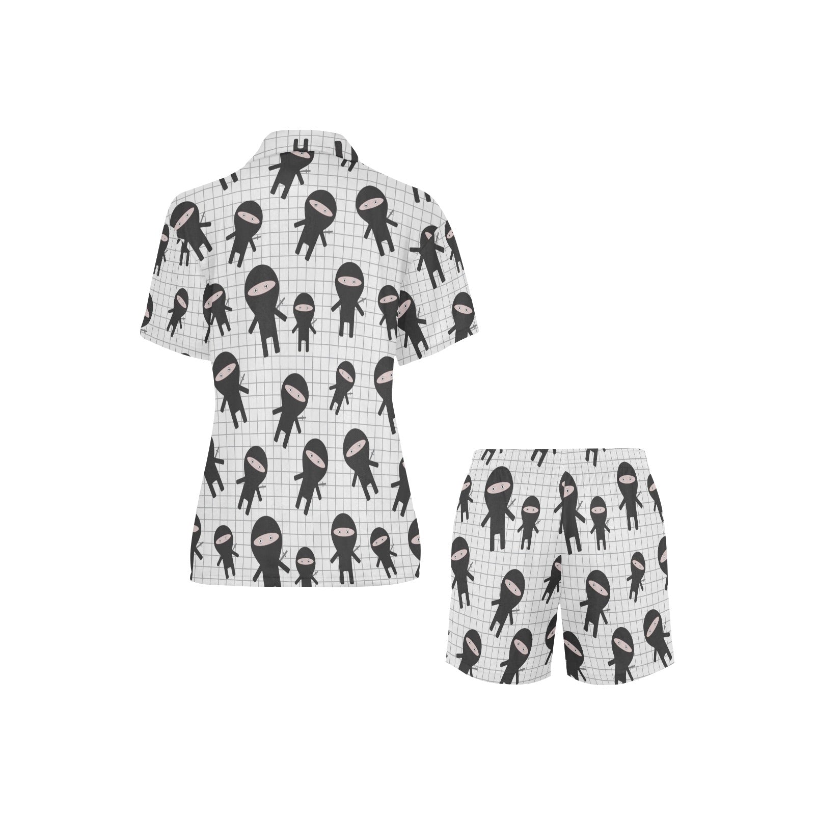 Ninja pattern plaid background Women's V-Neck Short Pajama Set