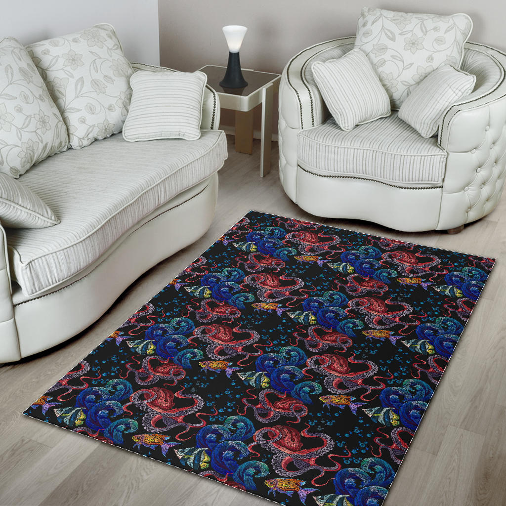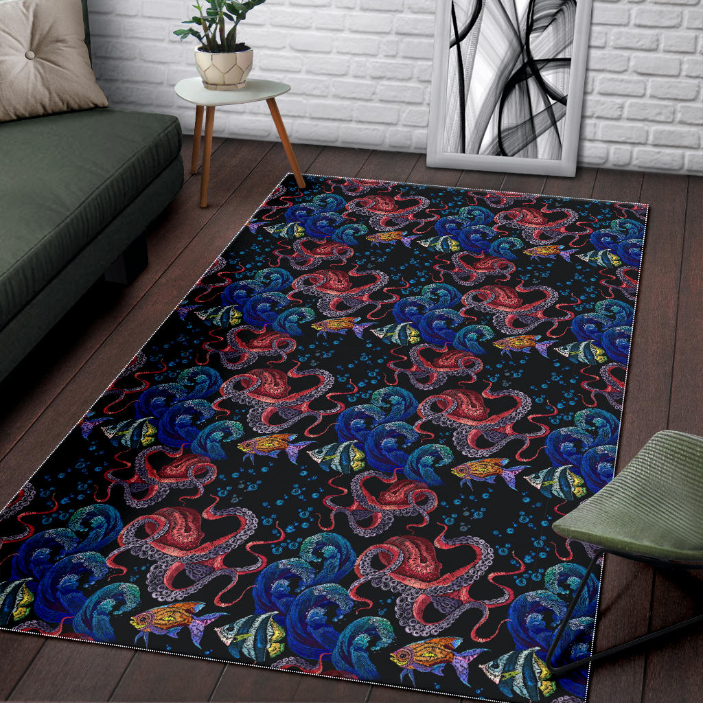 Octopus sea wave tropical fishe pattern Area Rug is a uniqued design and limited item. It made to order, hand printed, and sewn with love in our factory.