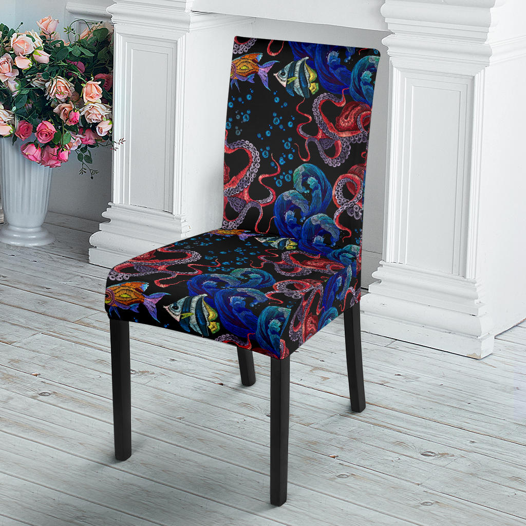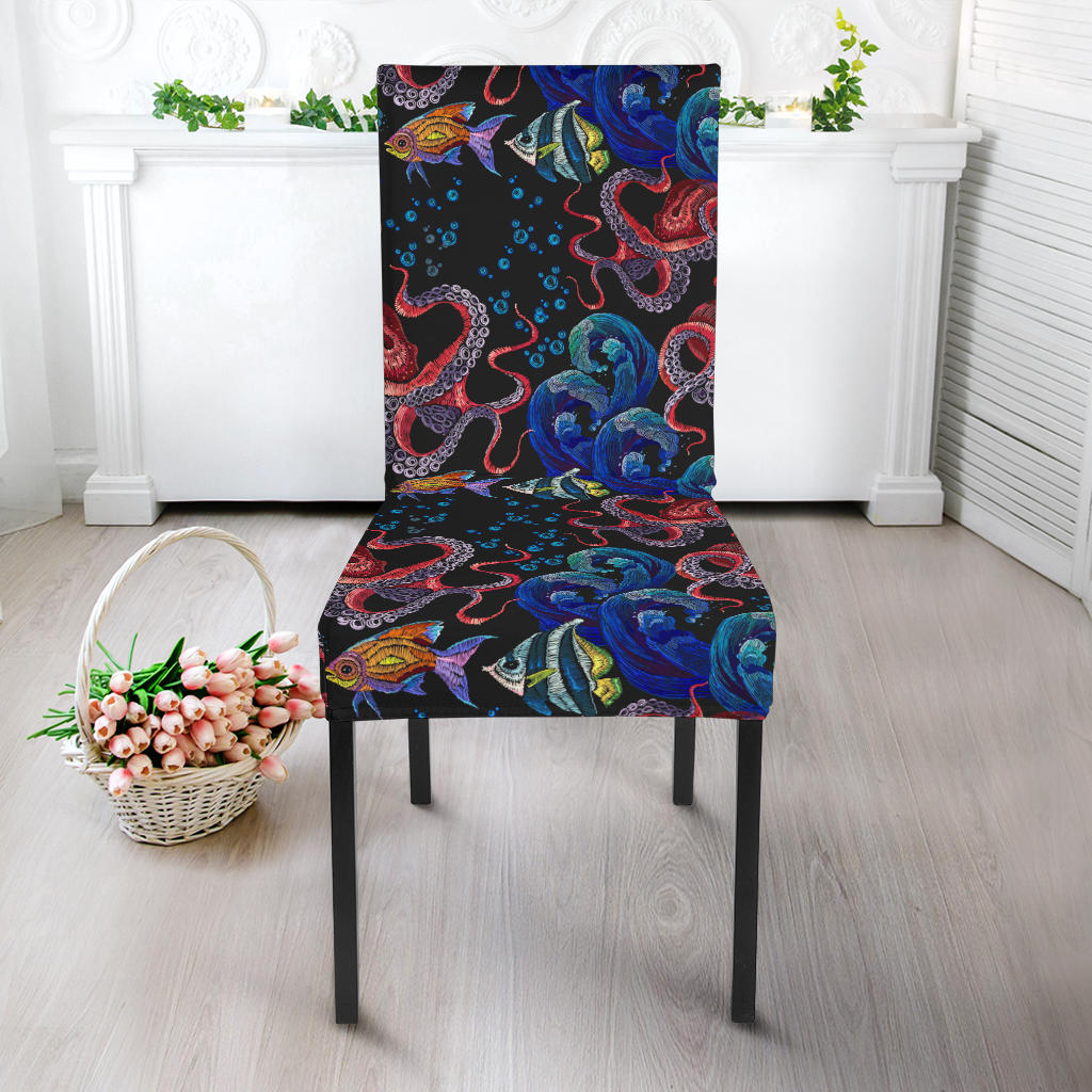 Octopus Sea Wave Tropical Fishe Pattern Dining Chair Slipcover