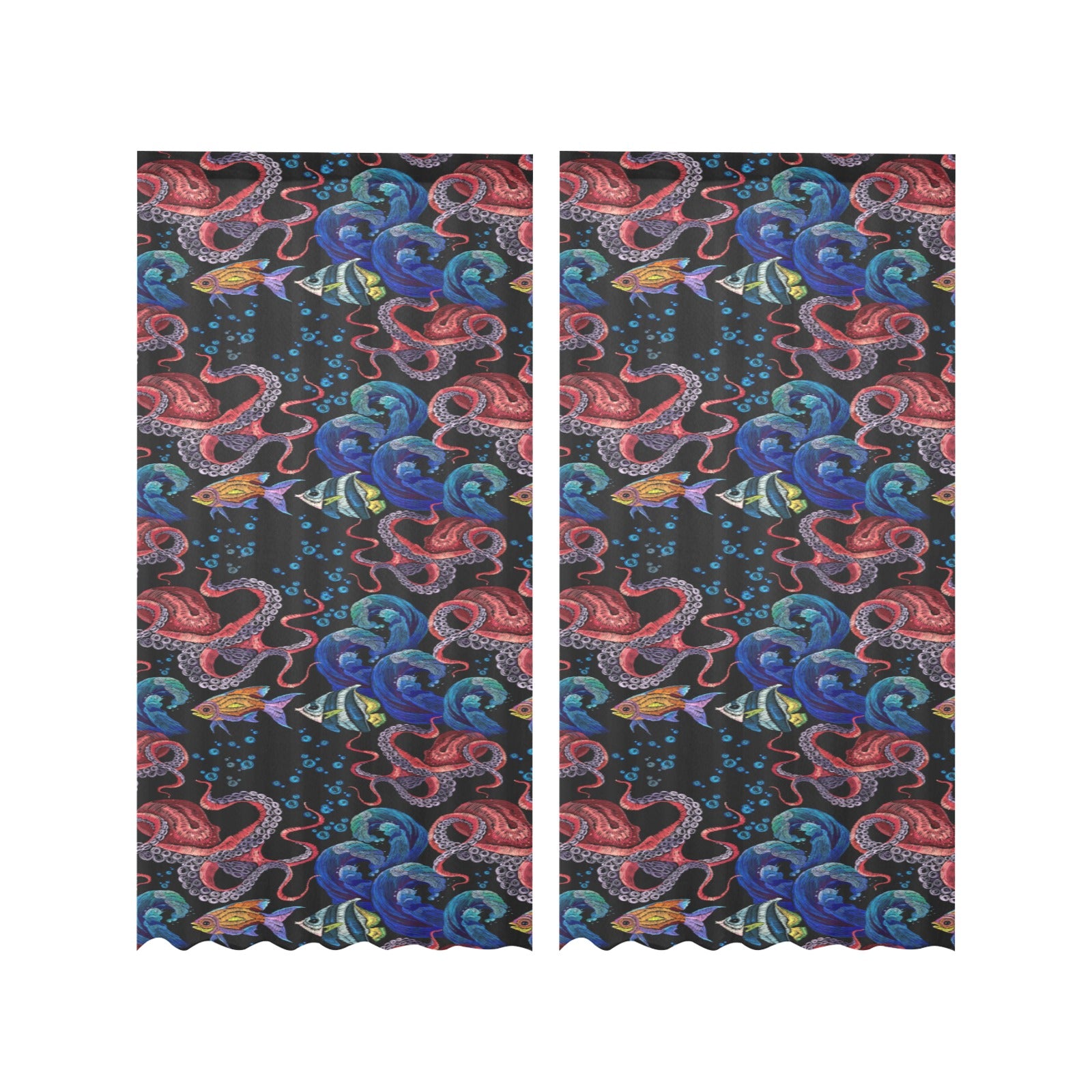 Octopus sea wave tropical fishe pattern Gauze Curtain