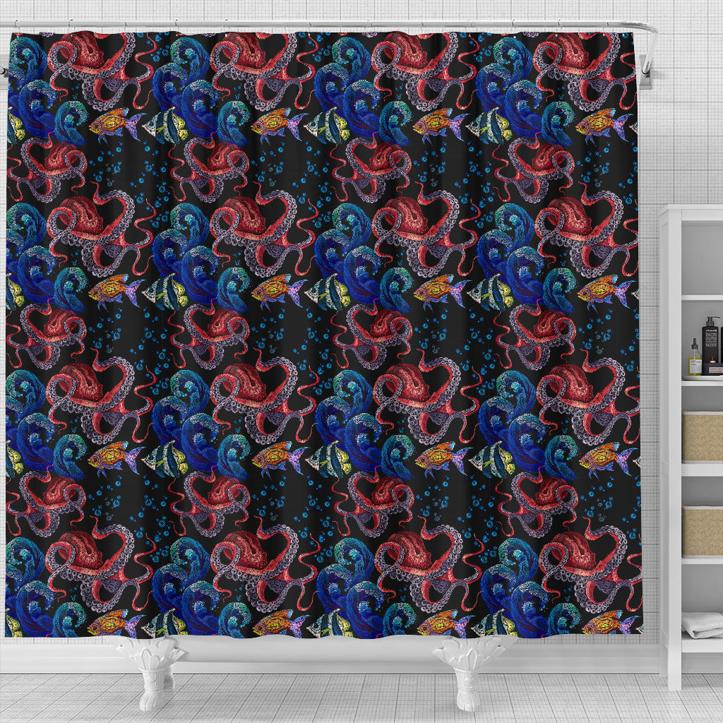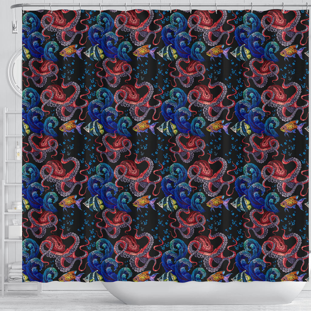 Octopus Sea Wave Tropical Fishe Pattern Shower Curtain Fulfilled In US