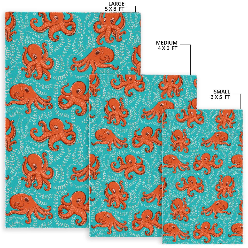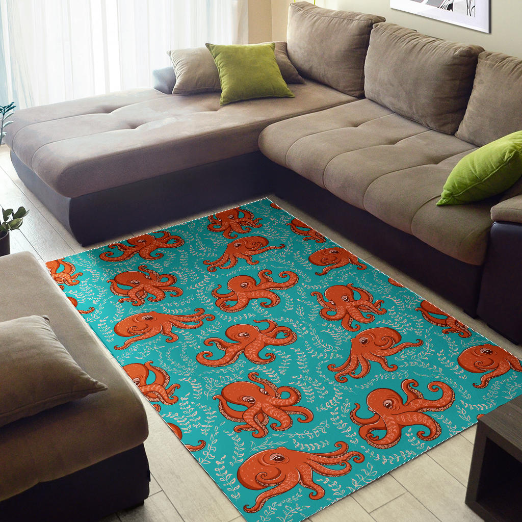 Octopus turquoise background Area Rug is a uniqued design and limited item. It made to order, hand printed, and sewn with love in our factory.