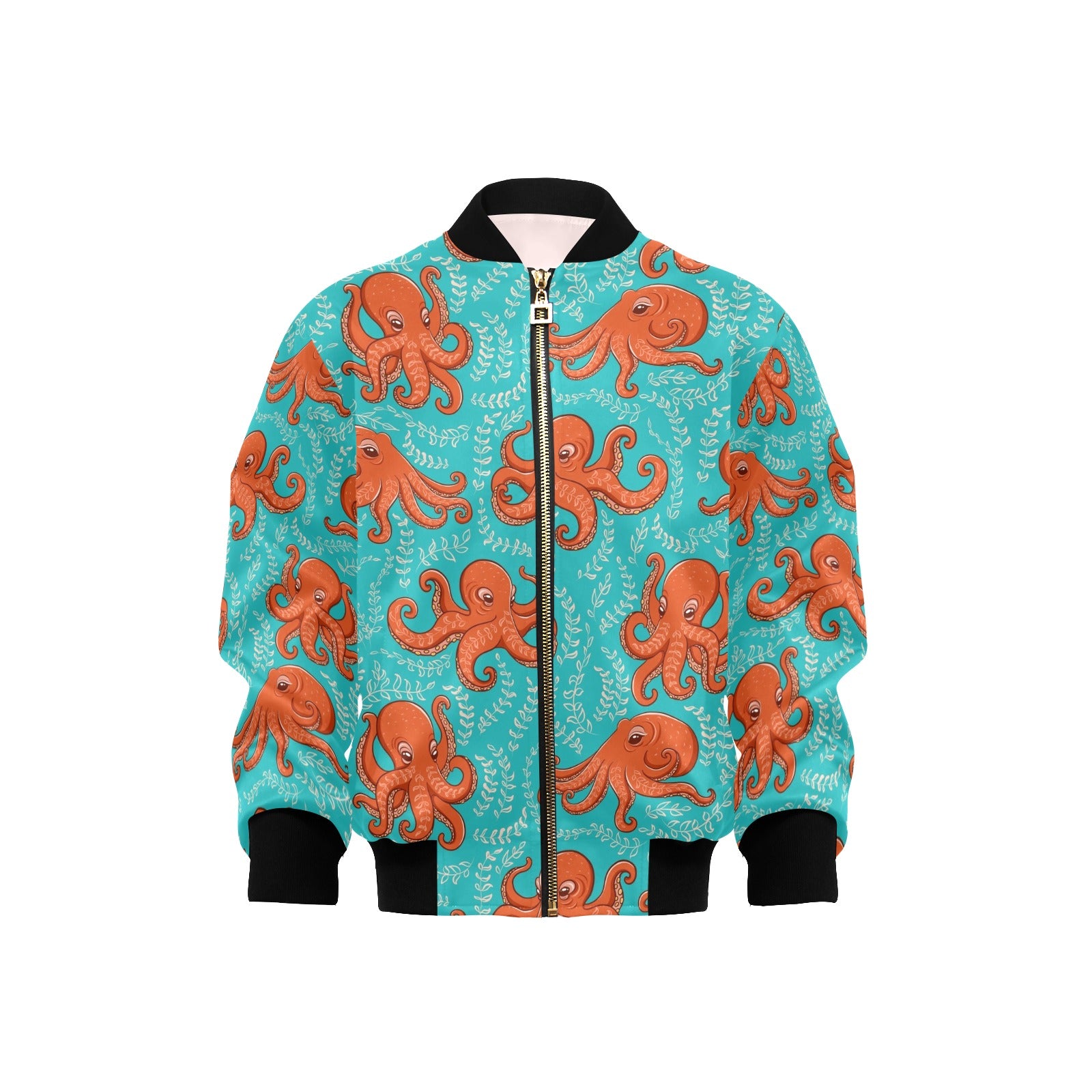 Octopus turquoise background Kids' Boys' Girls' Bomber Jacket