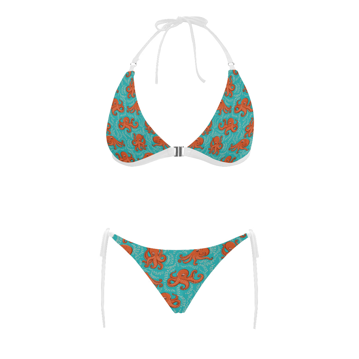 Octopus turquoise background Sexy Bikinis Two-Piece Swimsuits are uniqued design and limited item. It made to order, hand printed, and sewn with love in our factory.