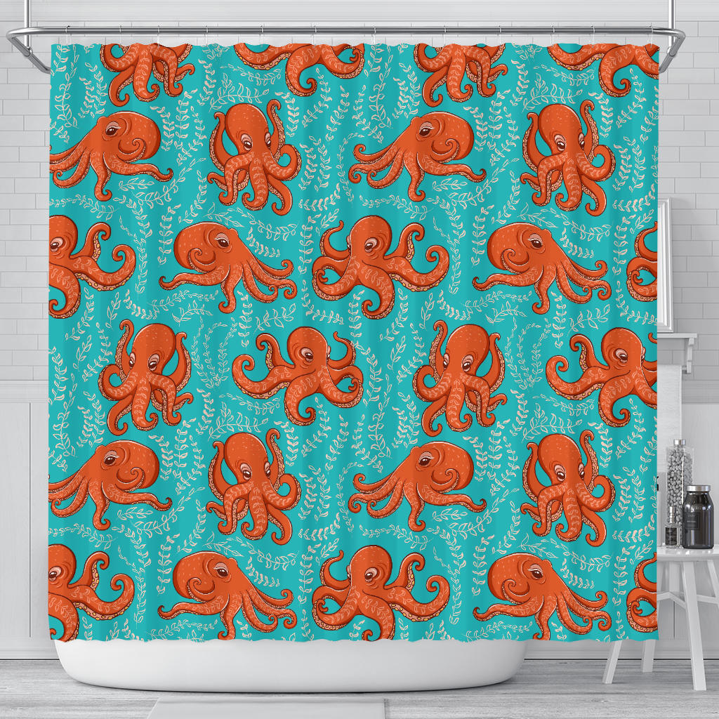 Octopus Turquoise Background Shower Curtain Fulfilled In US
