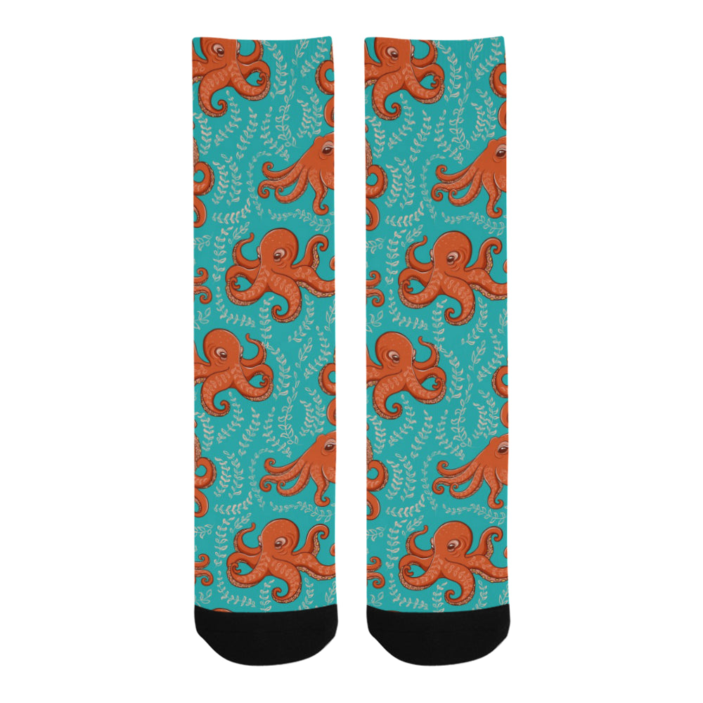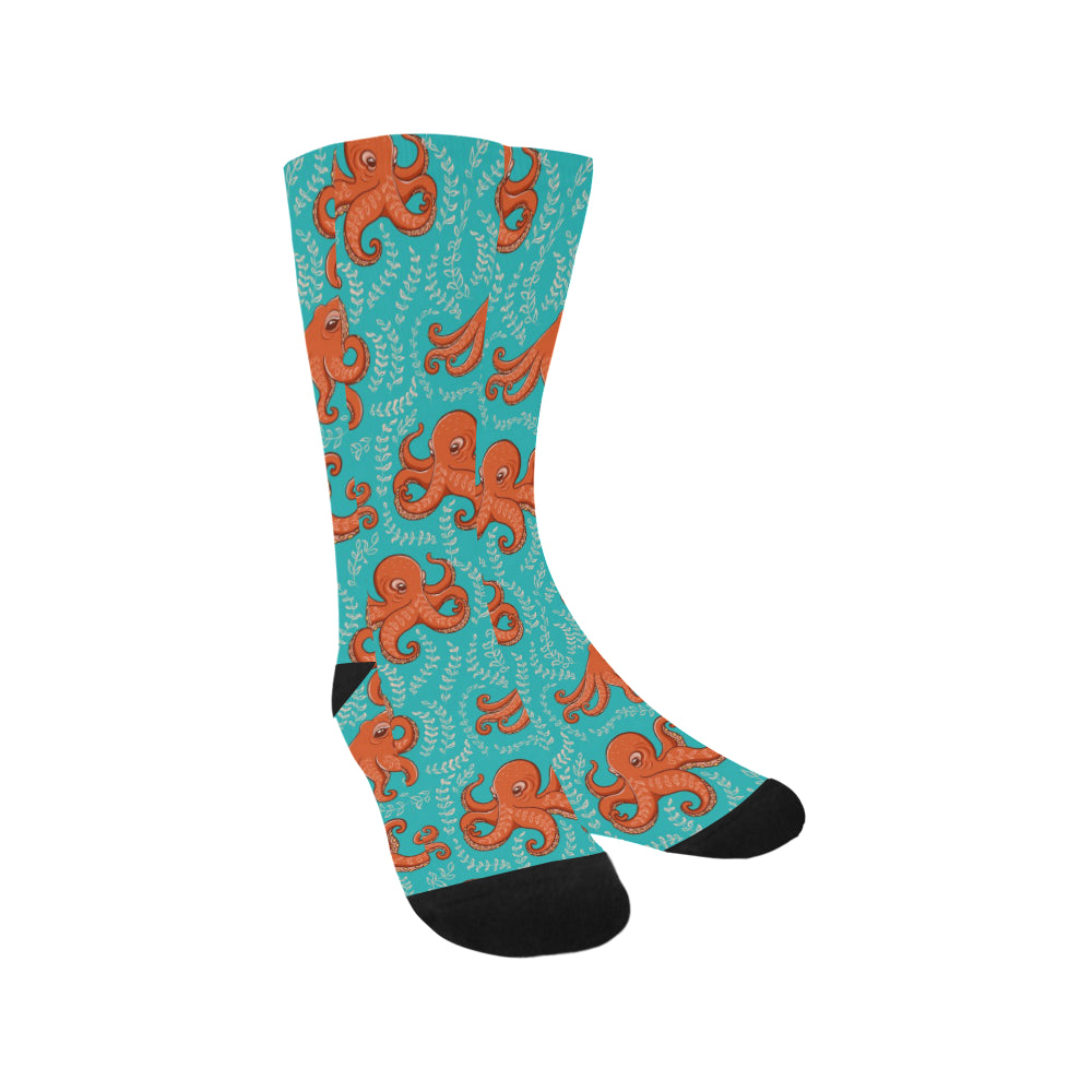 Octopus turquoise background Crew Socks are uniqued design and limited item. It made to order, hand printed, and sewn with love in our factory.