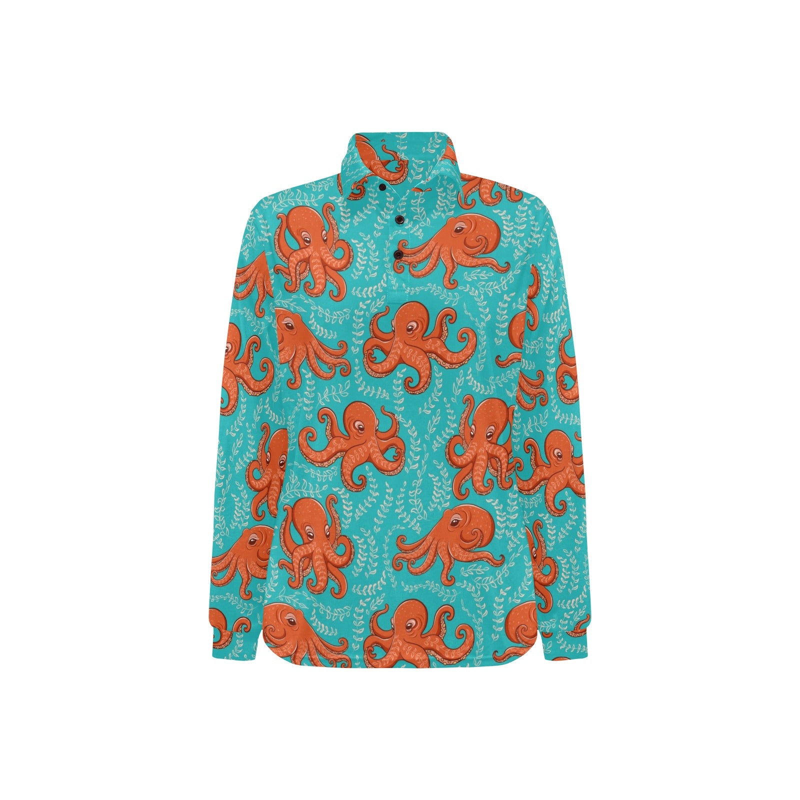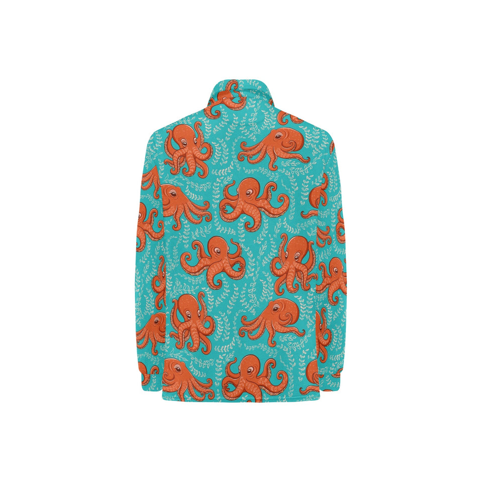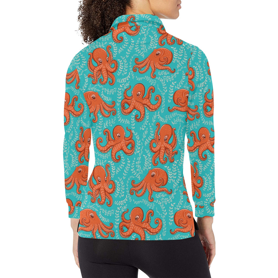 Octopus turquoise background Women's Long Sleeve Polo Shirt