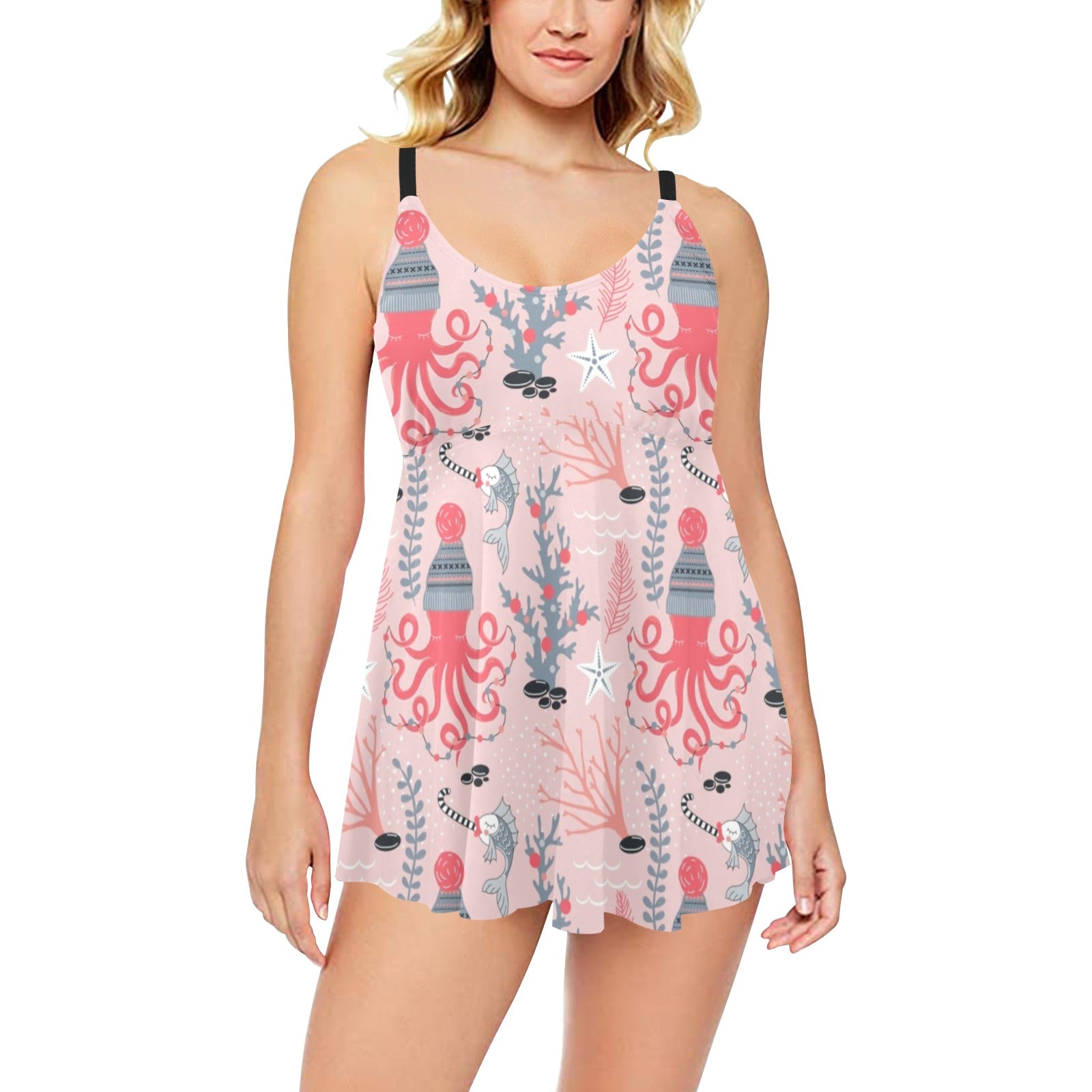 Octopus winter hat garland Fish candy Seaweed Cora Chest Sexy Pleated Two Piece Swim Dress