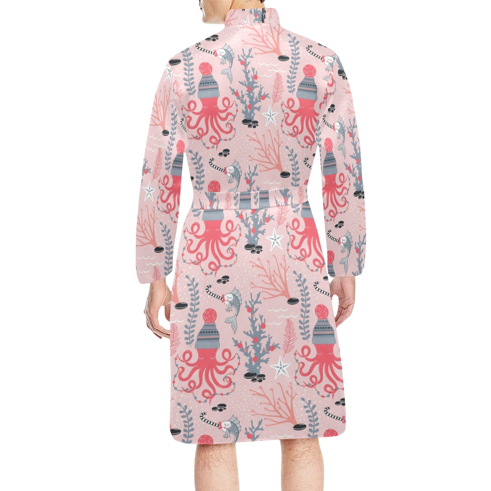 Octopus winter hat garland Fish candy Seaweed Cora Men's Long Sleeve Belted Night Robe
