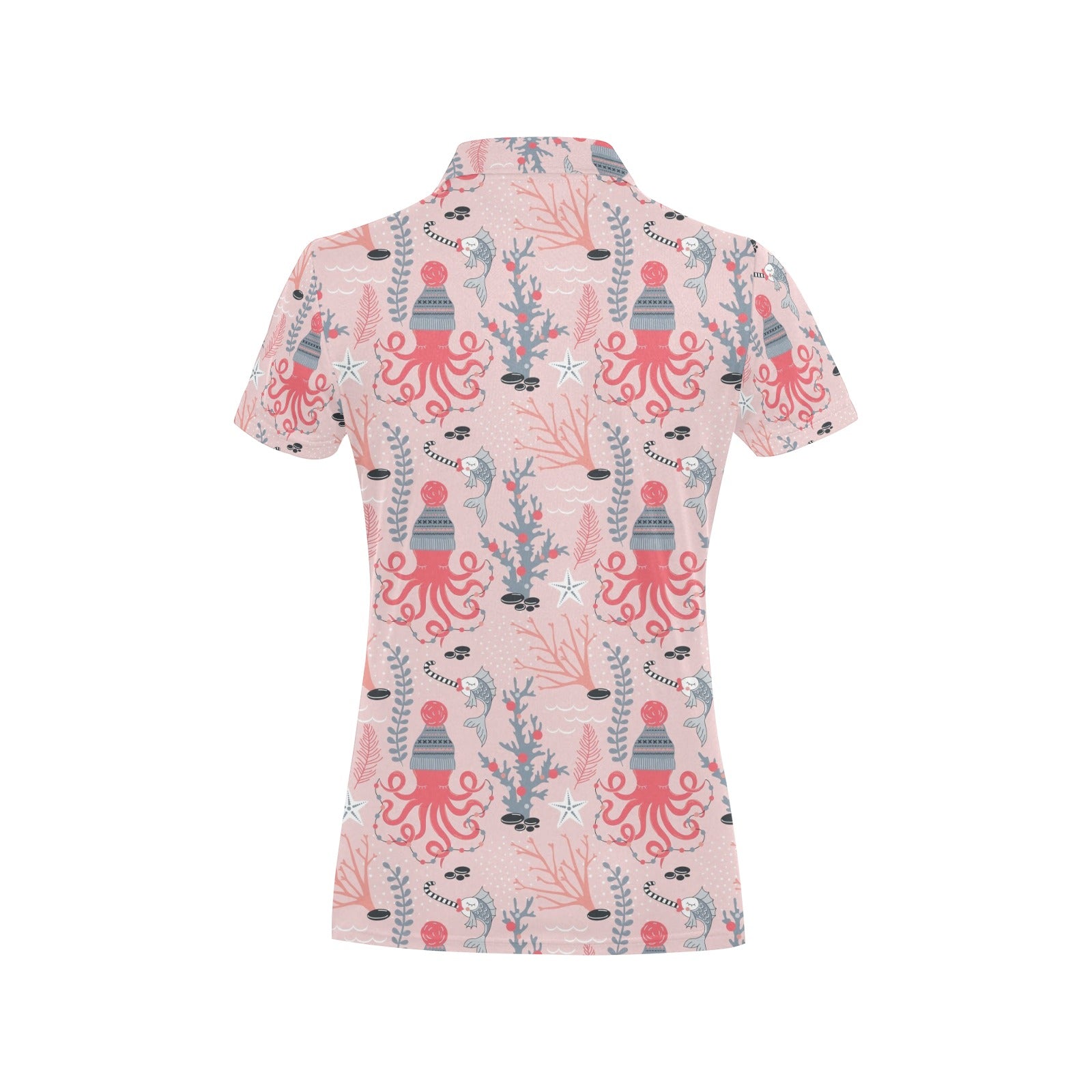 Octopus winter hat garland Fish candy Seaweed Cora Women's All Over Print Polo Shirt