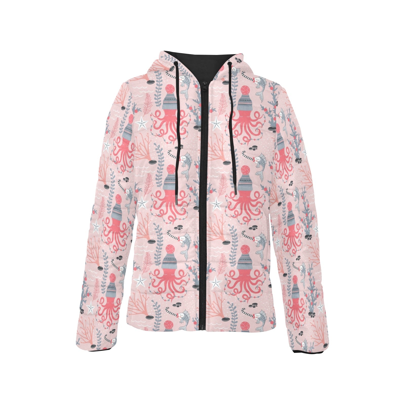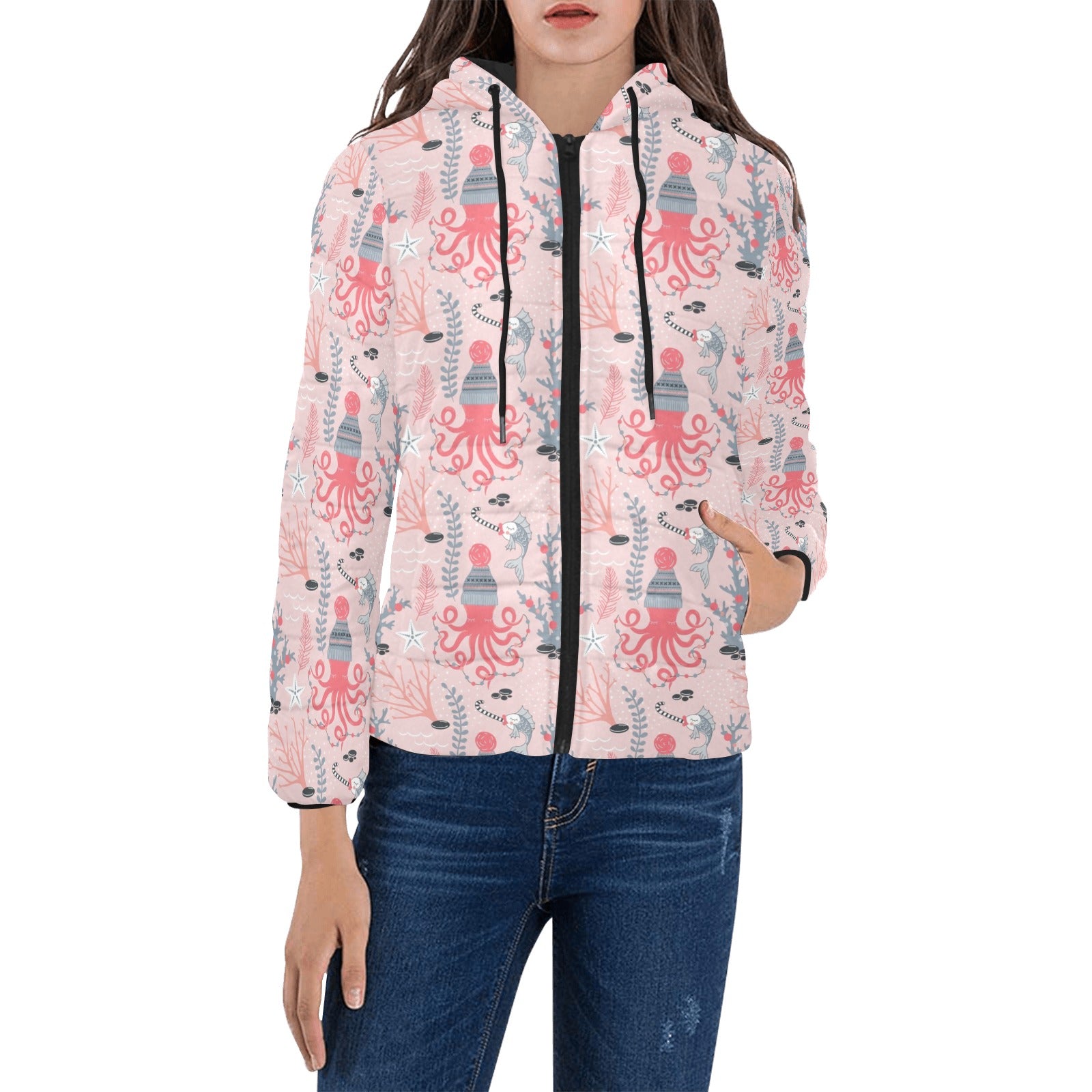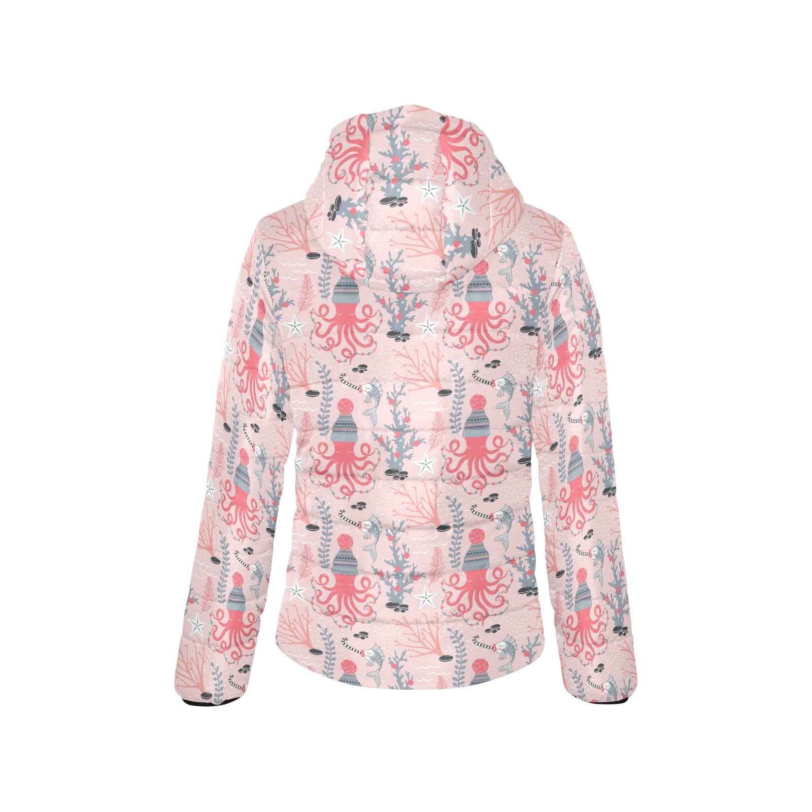 Octopus winter hat garland Fish candy Seaweed Cora Women's Padded Hooded Jacket