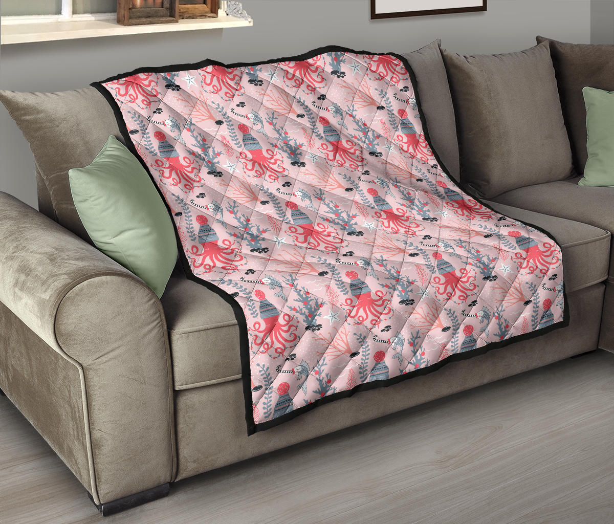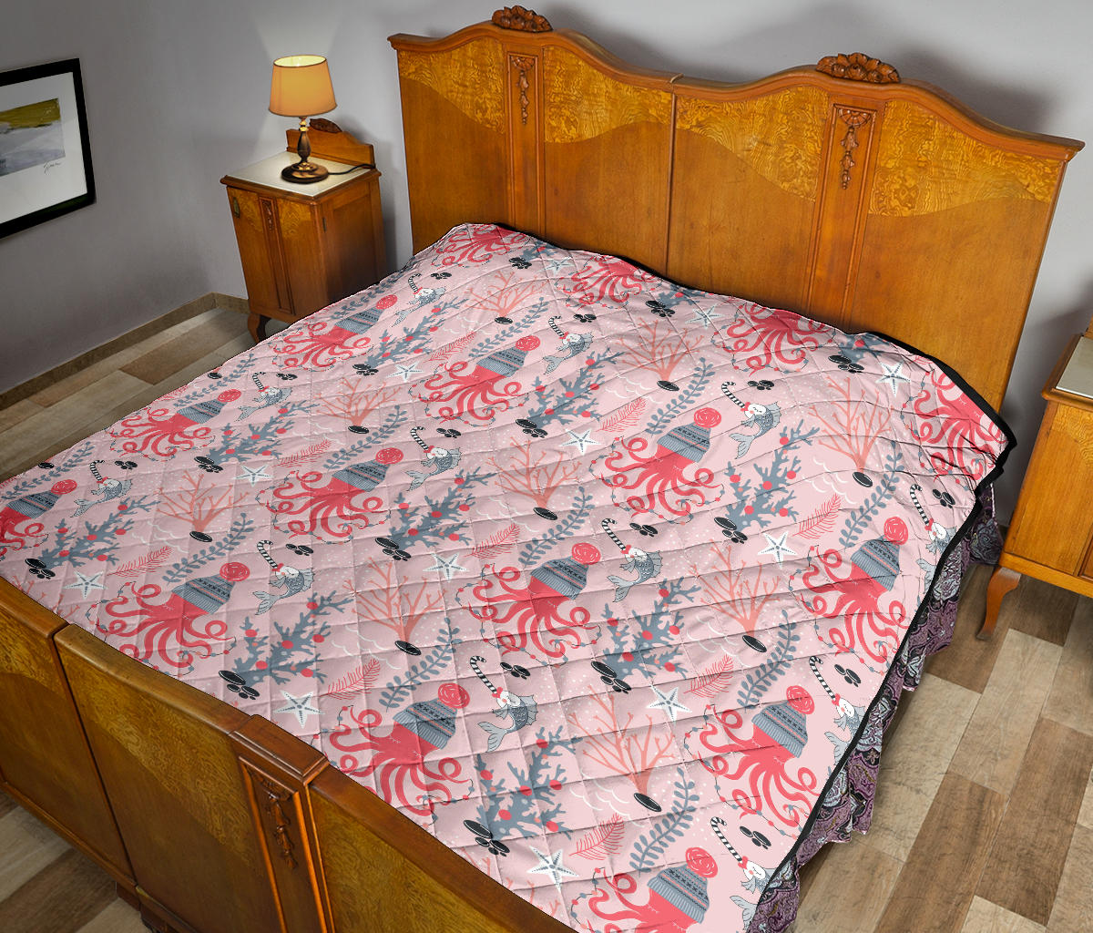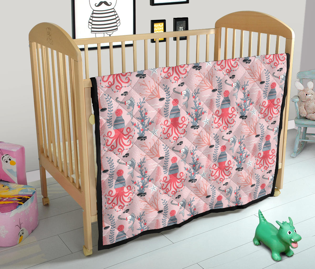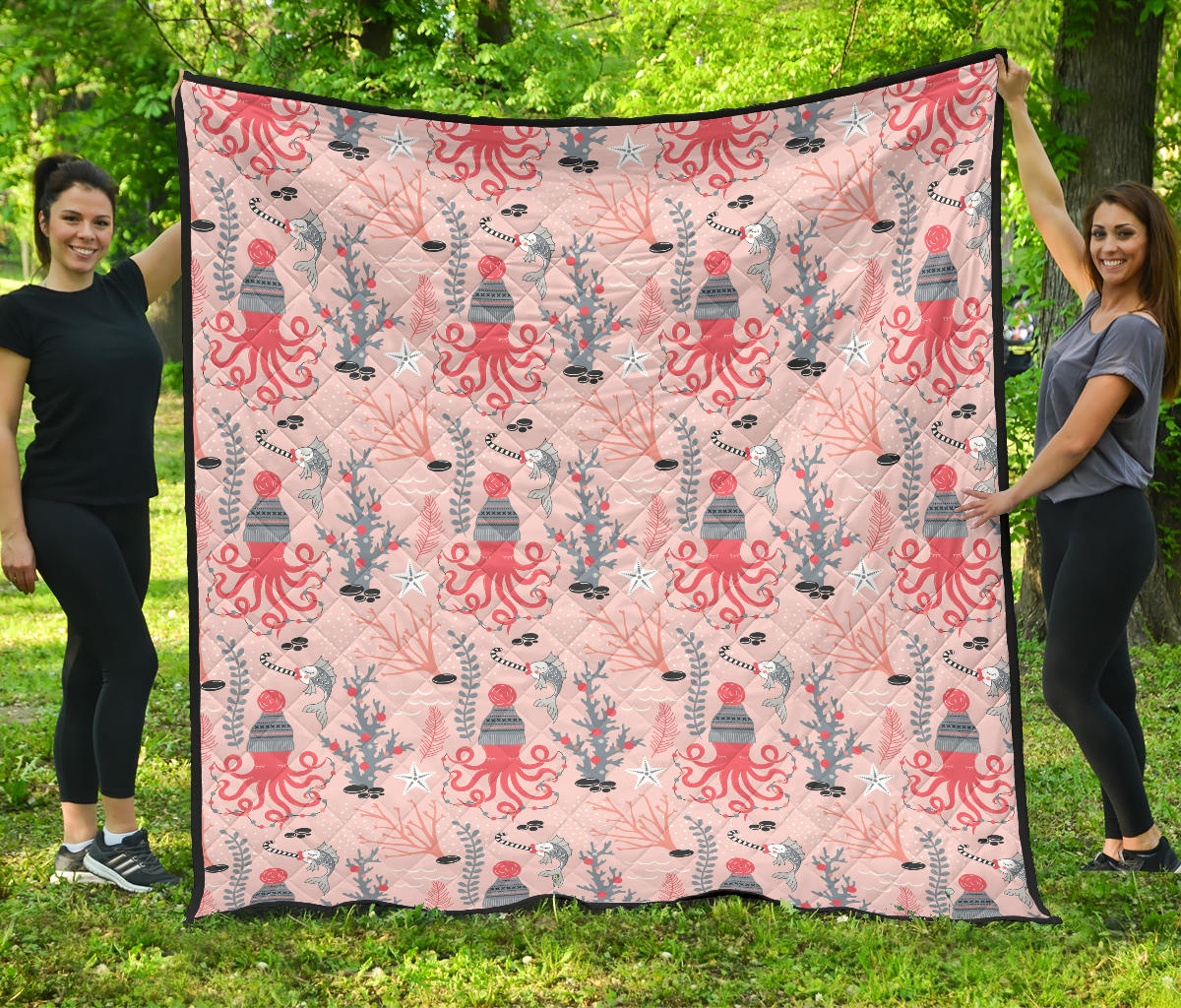 Octopus Winter Hat Garland Fish Candy Seaweed Coral Starfish Premium Quilt is a uniqued design and limited item. It made to order, hand printed, and sewn with love in our factory.