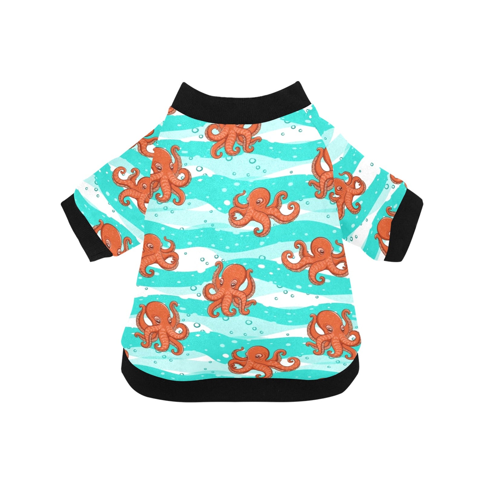 Octopuses sea wave background All Over Print Pet Dog Round Neck Fuzzy Shirt