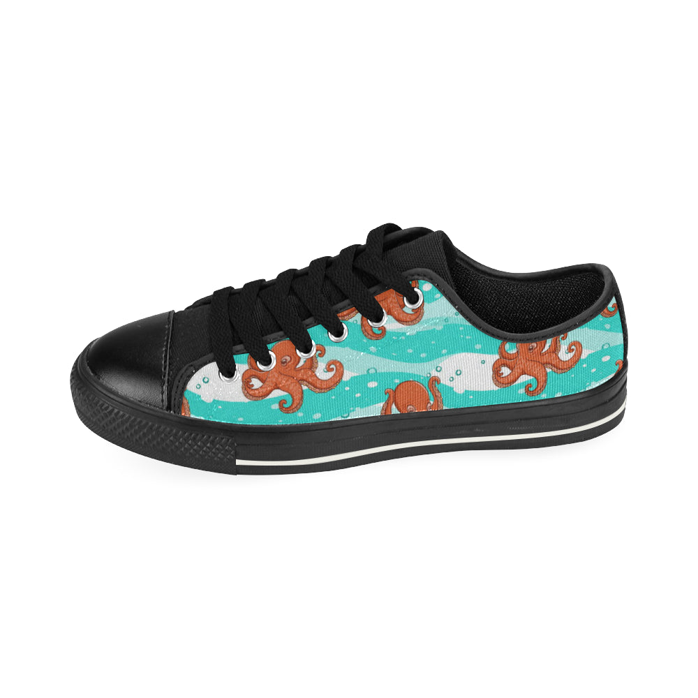 Octopuses sea wave background Men's Low Top Canvas Shoes Black