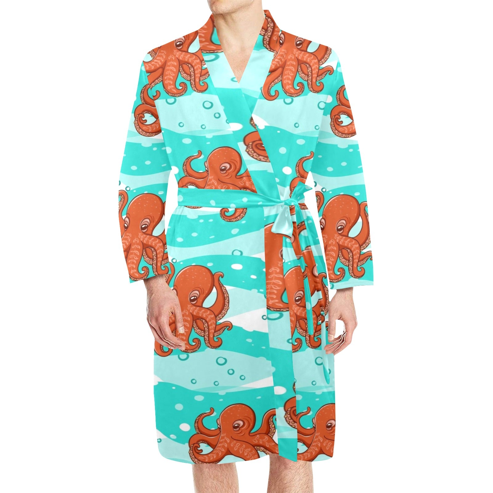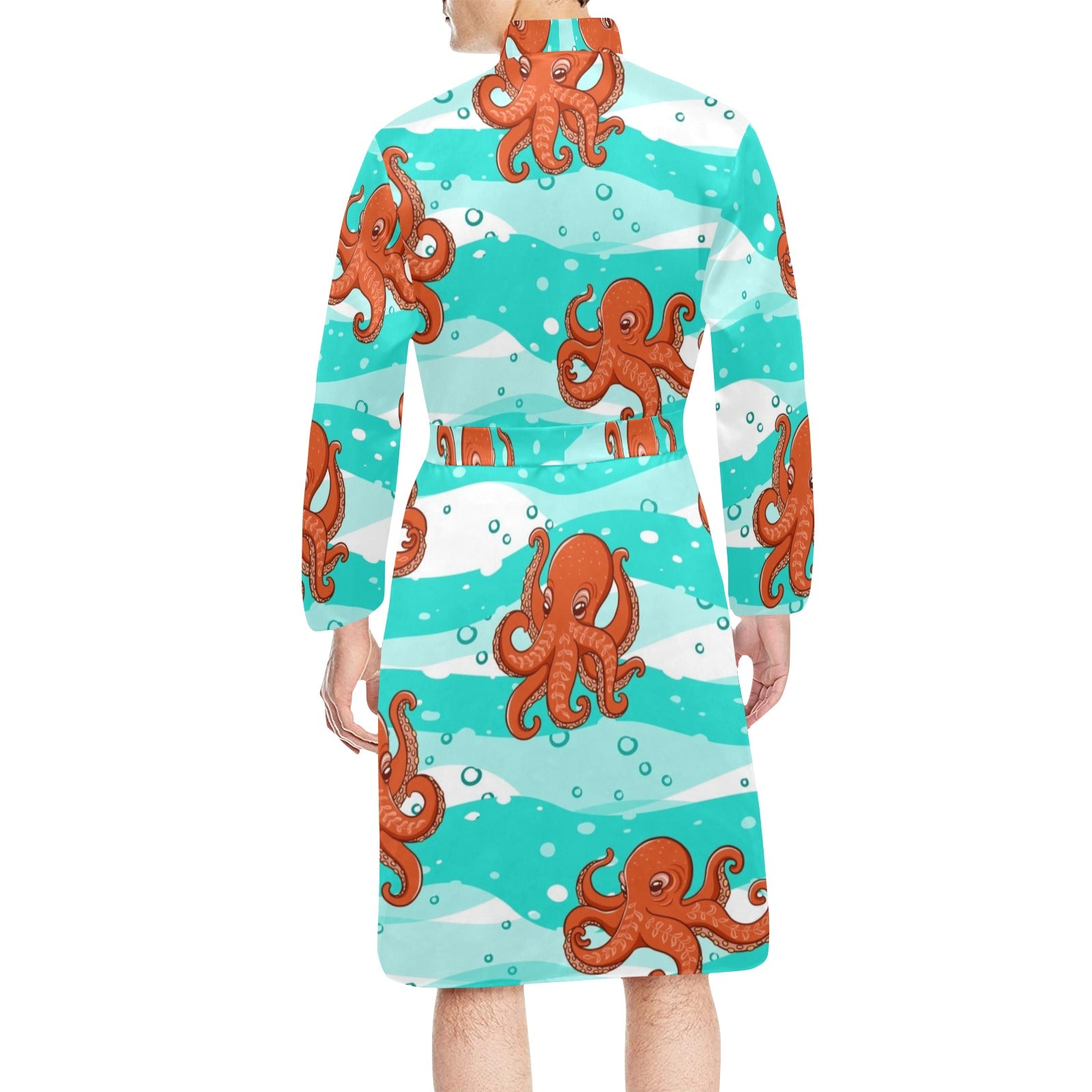 Octopuses sea wave background Men's Long Sleeve Belted Night Robe