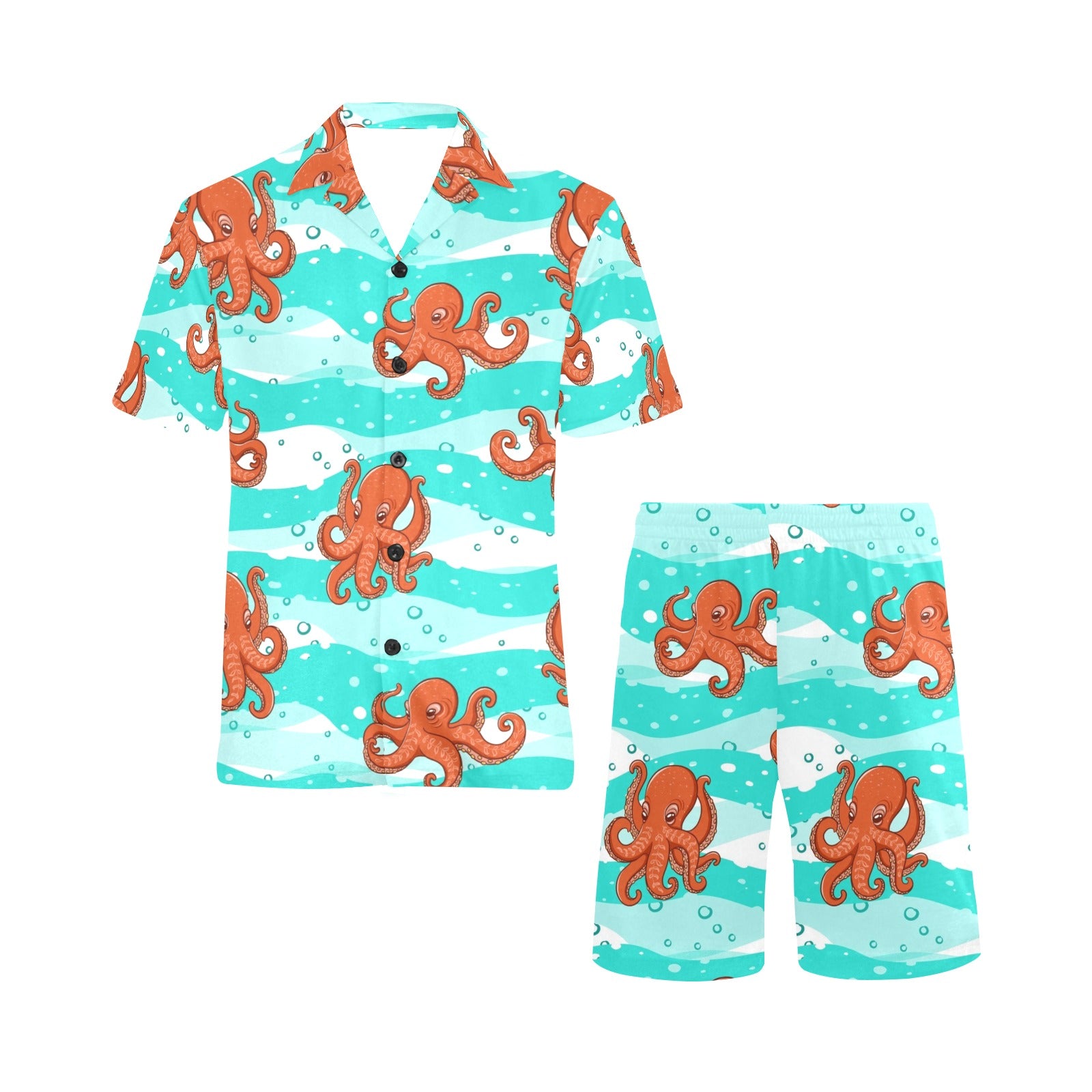 Octopuses sea wave background Men's V-Neck Short Pajama Set