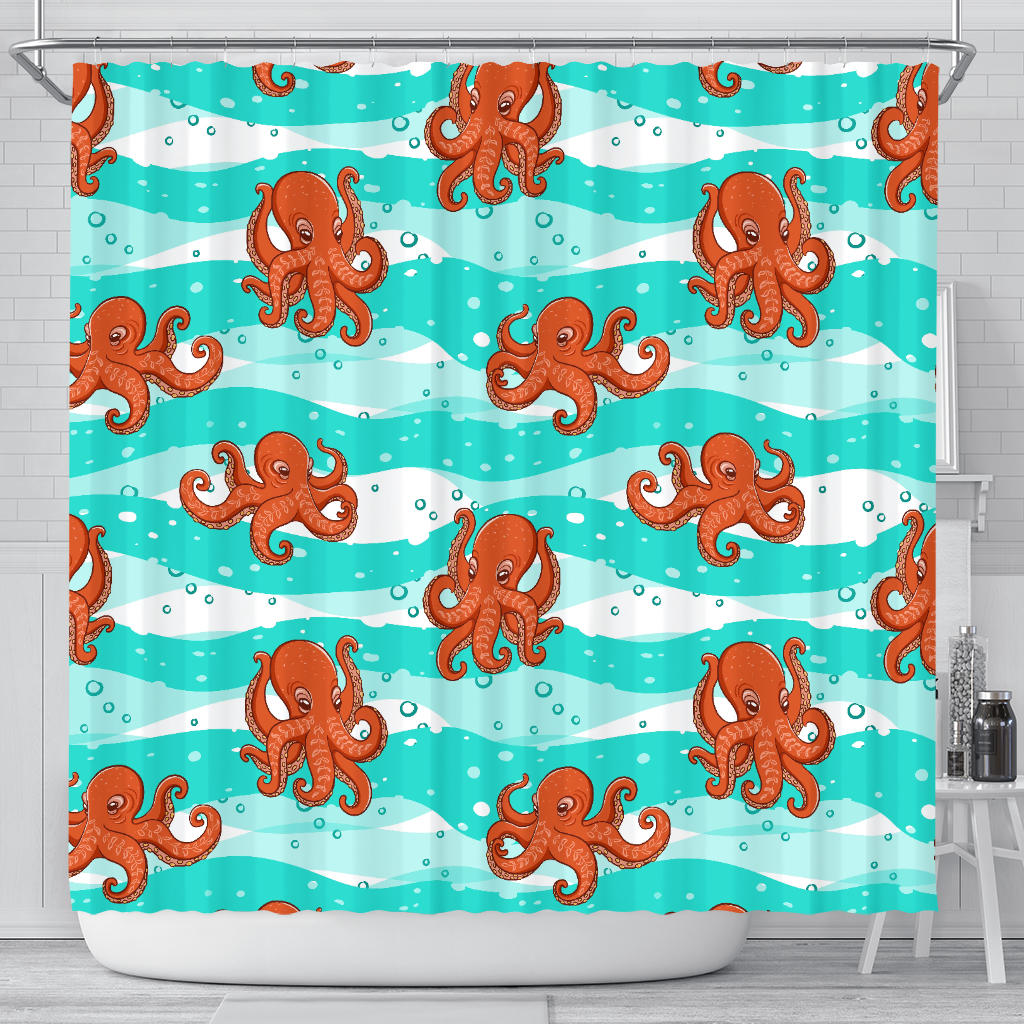 Octopuses Sea Wave Background Shower Curtain Fulfilled In US