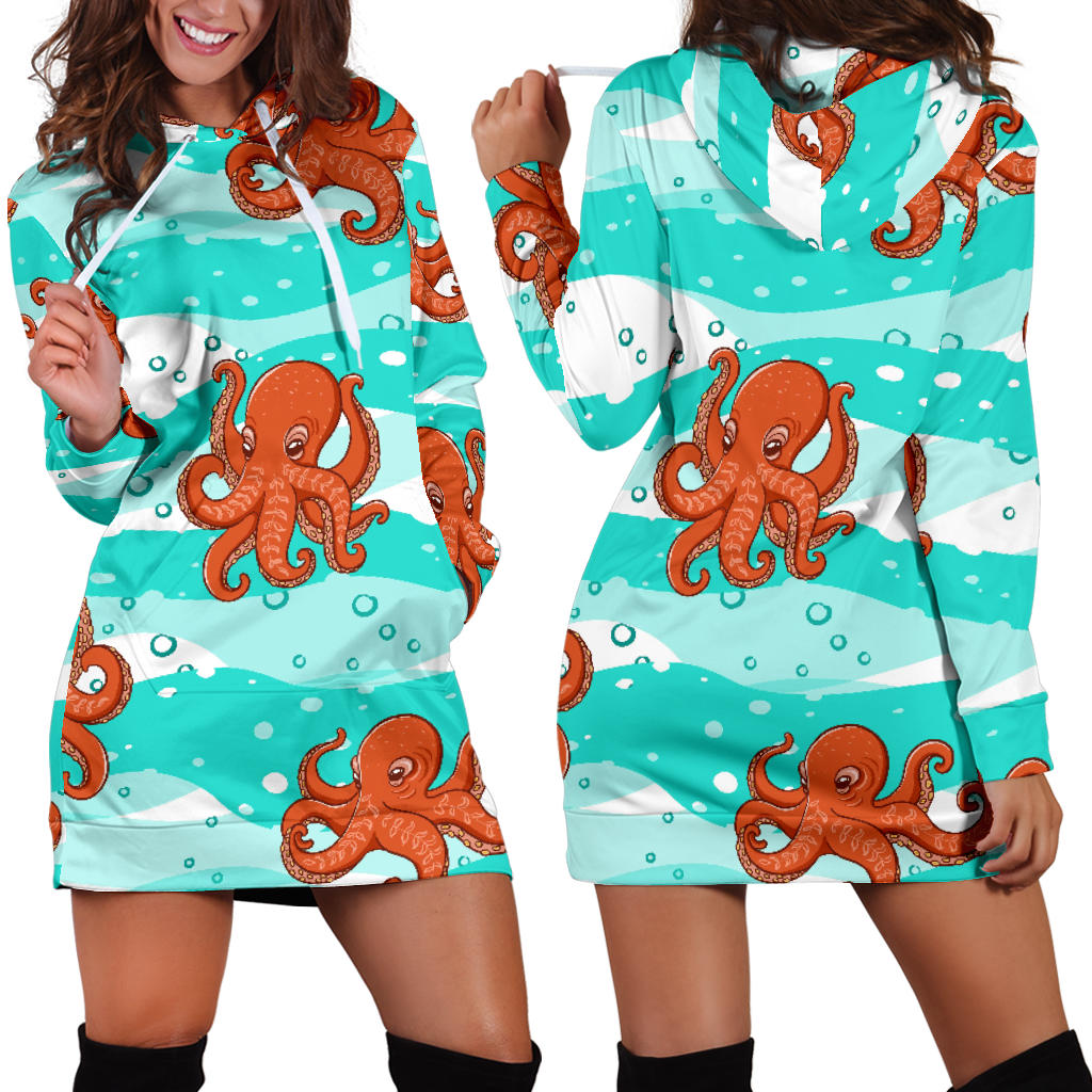 Octopuses sea wave background Women's Hoodie Dress is a uniqued design and limited item. It made to order, hand printed, and sewn with love in our factory.