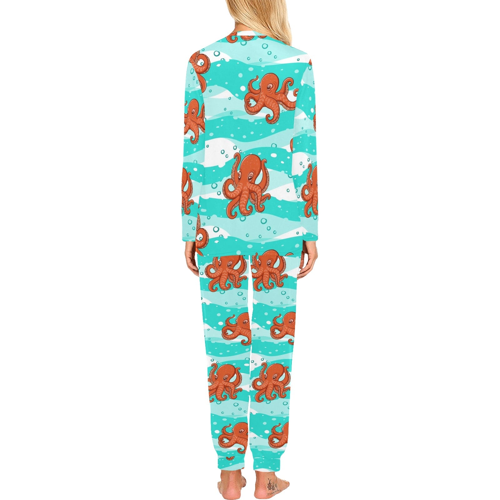 Octopuses sea wave background Women's All Over Print Pajama Set