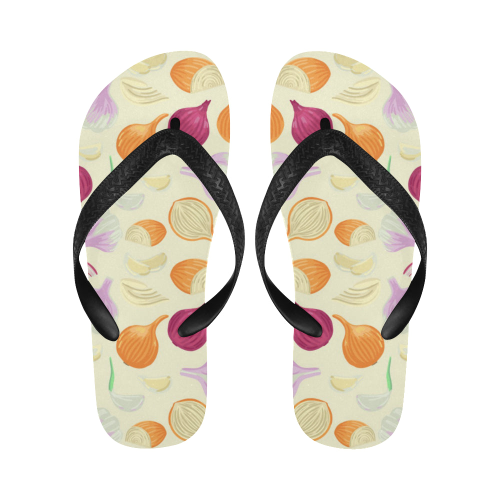 Onion garlic white red pattern Unisex Flip Flops is a uniqued design and limited item. It made to order, hand printed, and sewn with love in our factory.