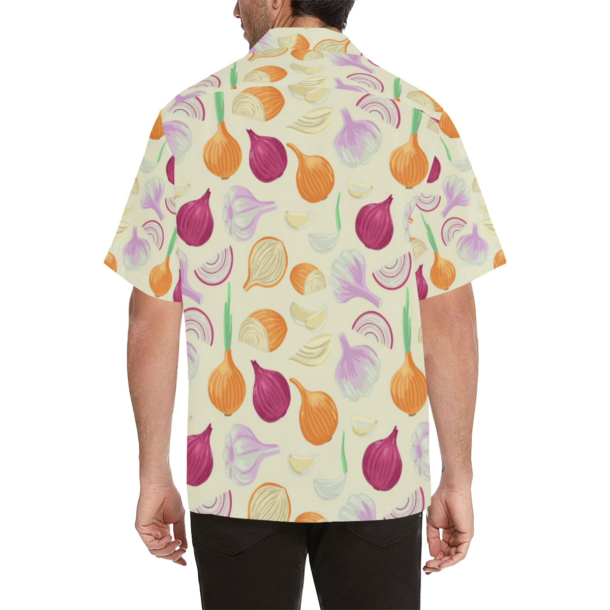 Onion garlic white red pattern Men's All Over Print Hawaiian Shirt is a uniqued design and limited item. It made to order, hand printed, and sewn with love in our factory.