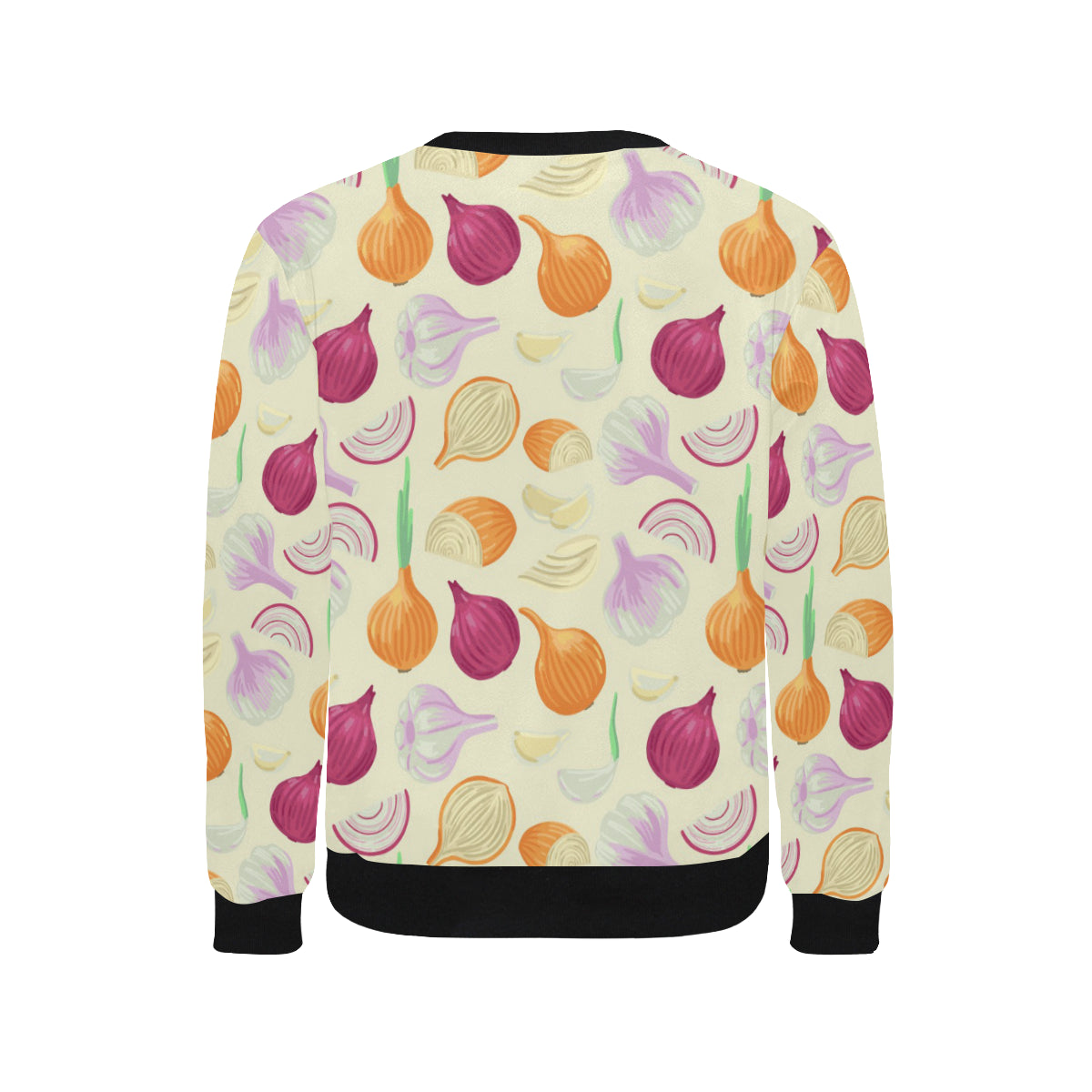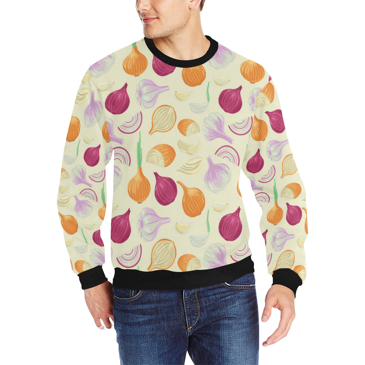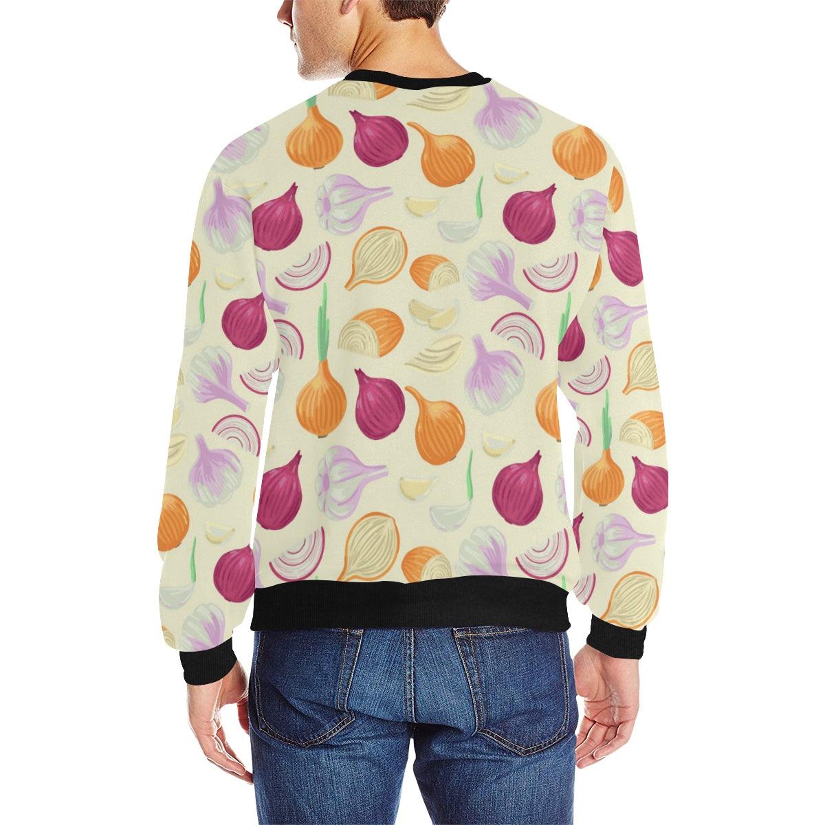 Onion garlic white red pattern Men's Crew Neck Sweatshirt is a uniqued design and limited item. It made to order, hand printed, and sewn with love in our factory.
