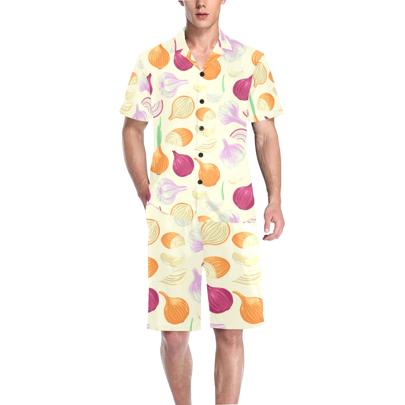 Onion garlic white red pattern Men's V-Neck Short Pajama Set