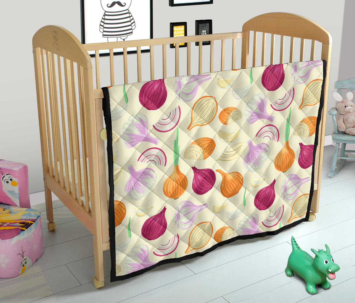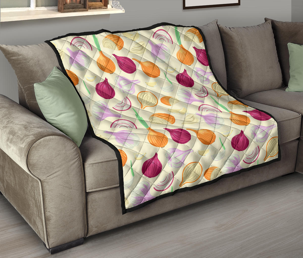 Onion Garlic White Red Pattern Premium Quilt is a uniqued design and limited item. It made to order, hand printed, and sewn with love in our factory.