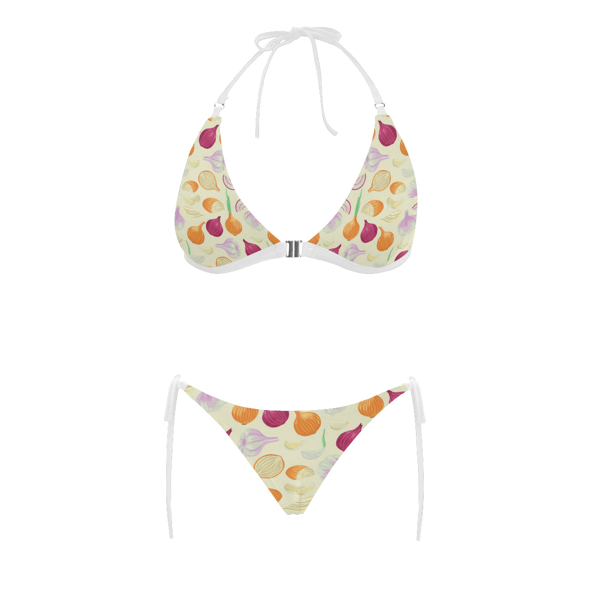 Onion garlic white red pattern Sexy Bikinis Two-Piece Swimsuits are uniqued design and limited item. It made to order, hand printed, and sewn with love in our factory.