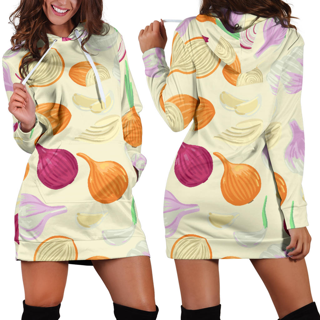 Onion garlic white red pattern Women's Hoodie Dress is a uniqued design and limited item. It made to order, hand printed, and sewn with love in our factory.