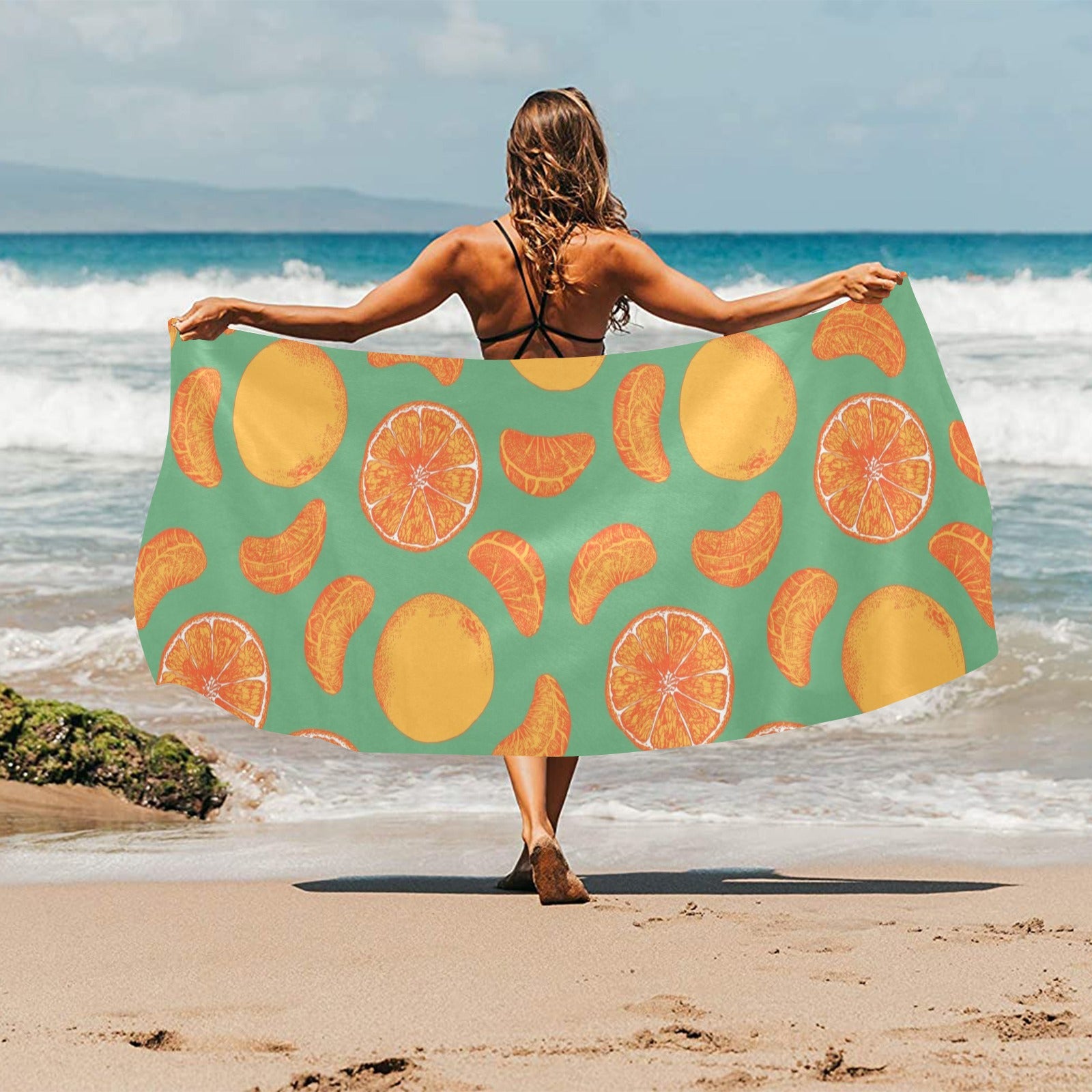 orange fruit pattern green background Beach Towel