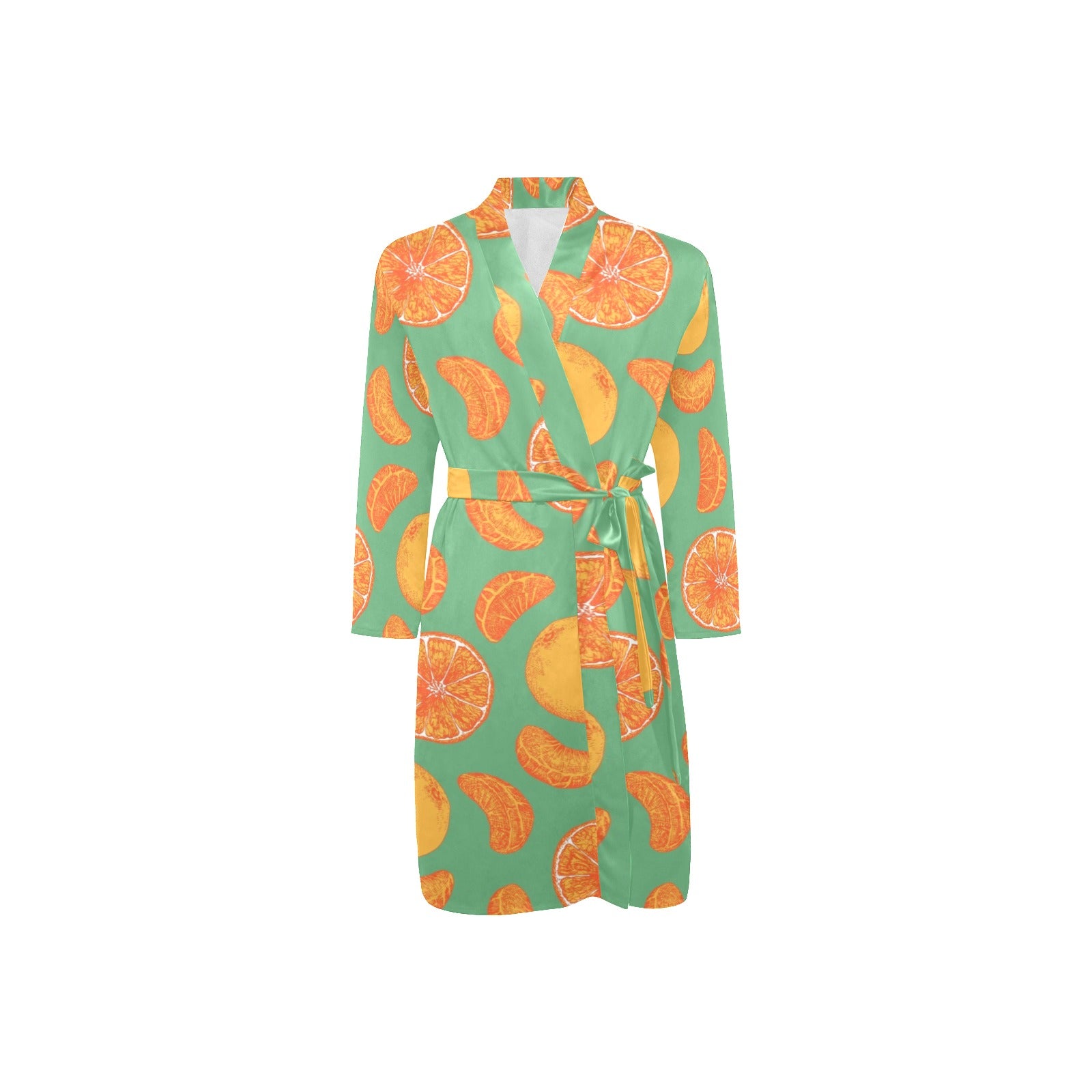 orange fruit pattern green background Men's Long Sleeve Belted Night Robe