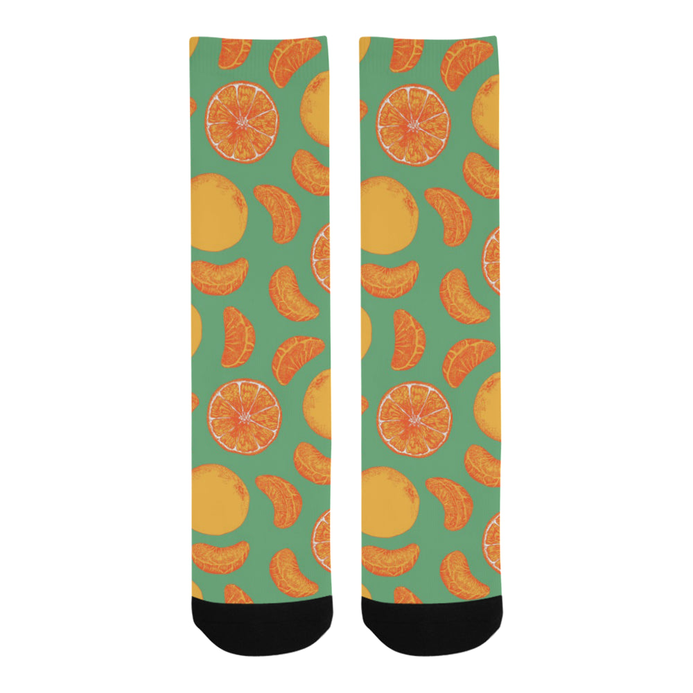 orange fruit pattern green background Crew Socks are uniqued design and limited item. It made to order, hand printed, and sewn with love in our factory.