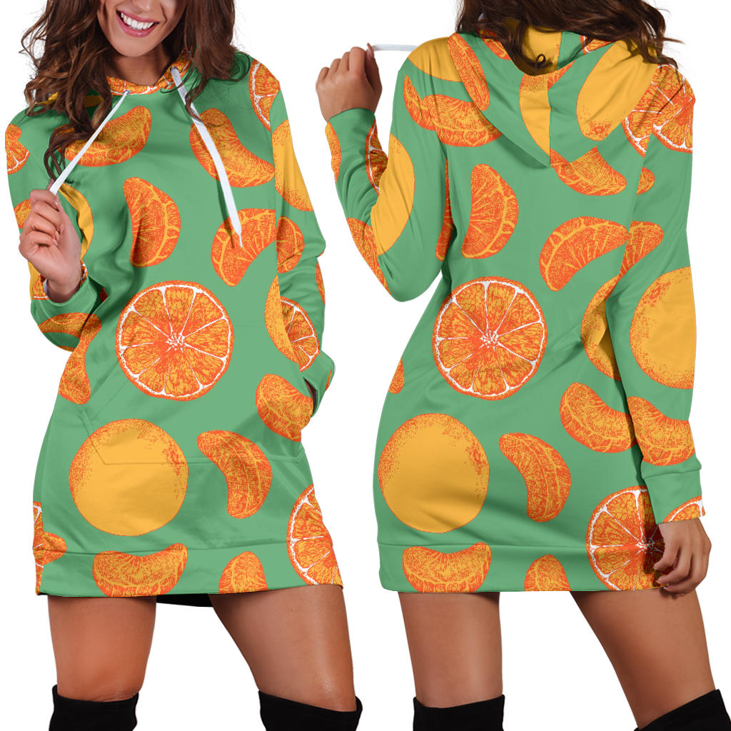 orange fruit pattern green background Women's Hoodie Dress is a uniqued design and limited item. It made to order, hand printed, and sewn with love in our factory.