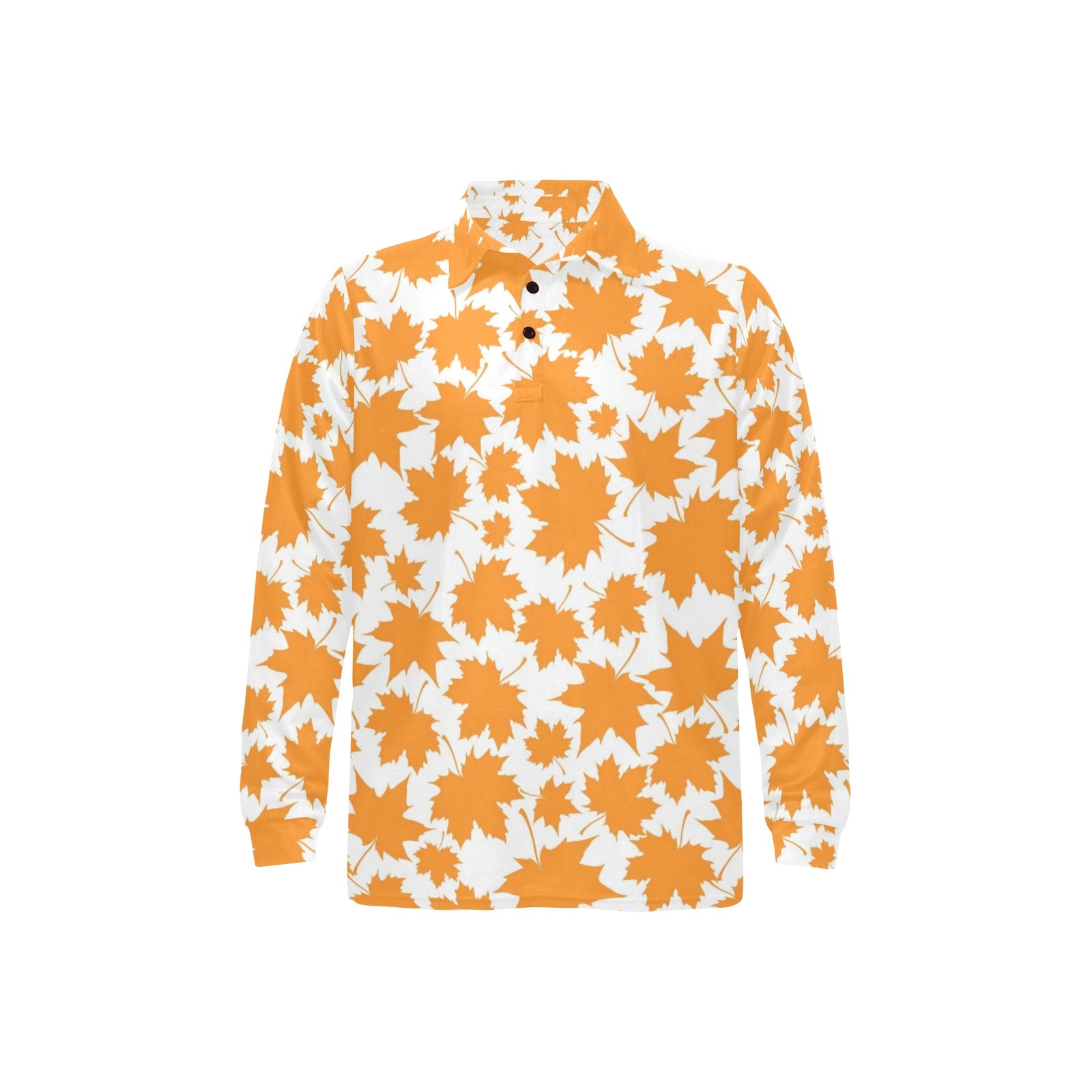 Orange Maple Leaf pattern Men's Long Sleeve Polo Shirt